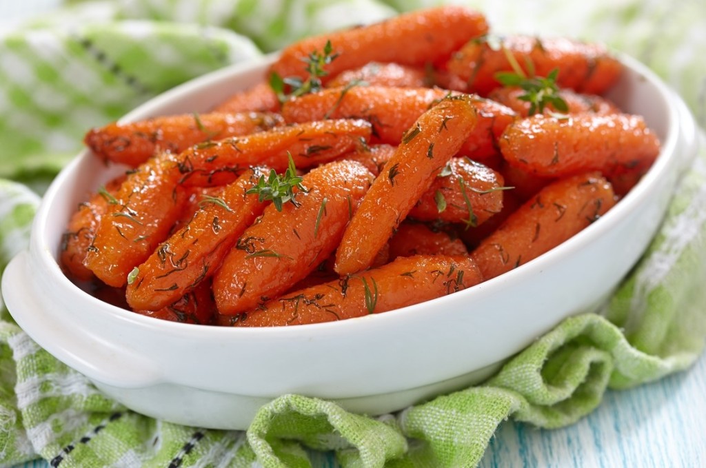 Drain carrots, place in a sauce pan over low heat. Add butter to the pan. Coat the carrots in the butter as it melt. Add the herbs. Stir to blend. Heat over low heat until the carrots are tender, about 5 minutes.