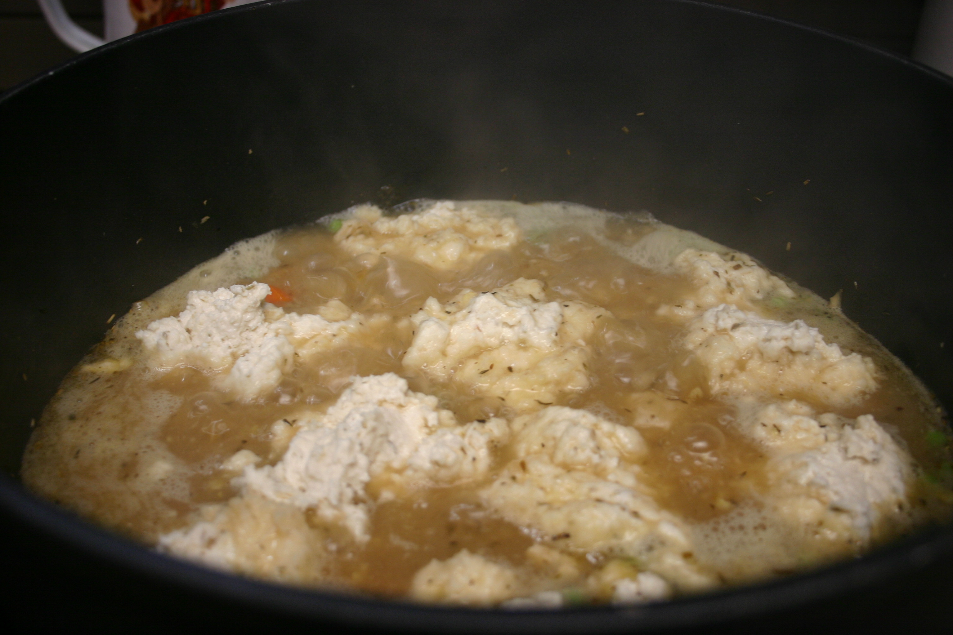 Heat the stock in the Dutch Oven to boiling. Drop dumpling dough by the teaspoonfuls over the stock in a single layer. Give the dumplings room to expand as they cook.