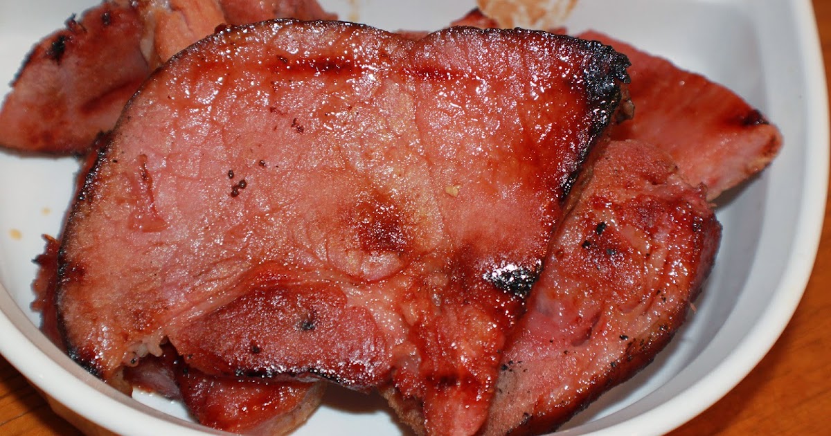 Heat grill or a grill-pan. Spray lightly with cooking spray to prevent ham steaks from sticking. Grill steaks for about 2 or 3 minutes per side. Brush whiskey glaze over steaks. Continue to grill until glistening, turning and brushing with glaze as needed.