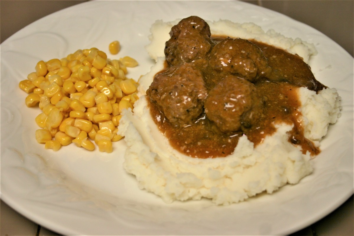 When I’m craving that down to earth goodness that only a Blue Plate can deliver, I tend to cook up Salisbury Steaks. Don’t ask me why. There’s just something about a Salisbury Steak smothered in Onion Gravy with Mashed Potatoes and a side of corn. I don’t know what it is, but I really love it. So when I came across a recipe for Salisbury Meatballs I knew I had to give it a try.