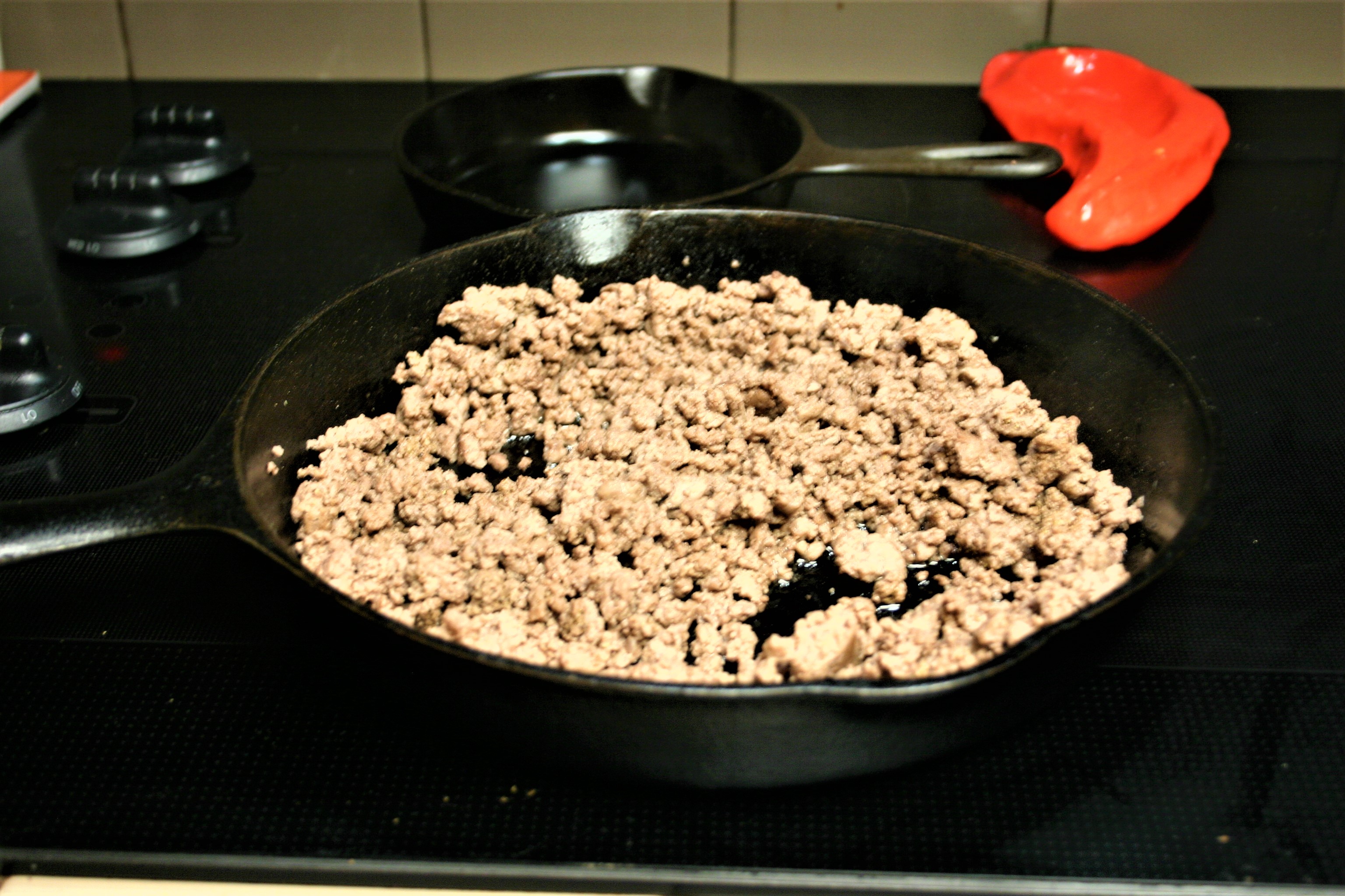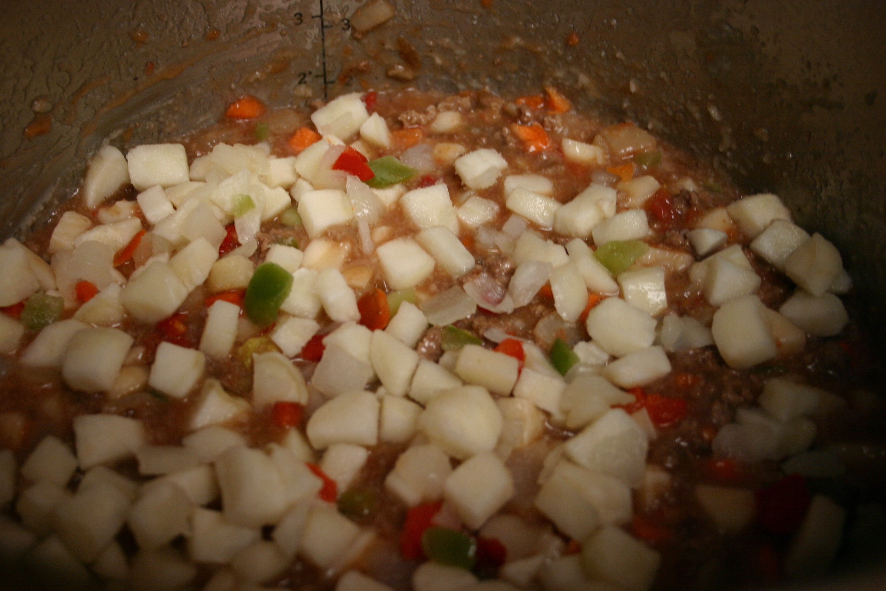 And so was the case for Hamburger Soup O’Brien. It was on the menu, then life happened, so it was pushed ahead for another day. Life had other plans, so it was pushed forward yet again and again. Finally, the day came when nothing stood between me and my meal planner. That is except one little thing – old age. I forgot to thaw anything out. Thank God for the convenience of a microwave. With a little patients and care, anything can be thawed in the microwave. Even bags of frozen potatoes. Go slow, use the defrost timer and keep checking. The goal is to defrost the diced potatoes, not cook them. The same can be said for ground beef. When I do find myself stuck using the microwave to thaw ground beef, I always stop zapping my hamburger meat while the center is still partially frozen. Don’t worry, once crumbled in the skillet, those bits still frozen will thaw beautifully.