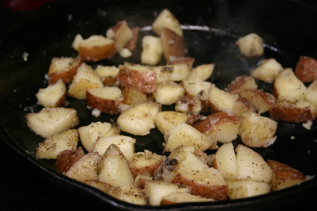 Note: If you do not have an Instant Pot, simply place potatoes in a steamer basket. Place the basket in a pot filled with enough water to just cover the potatoes. Bring to a boil, let cook for about 6 or 7 minutes, just until potatoes are tender. Finish potatoes in the skillet.
