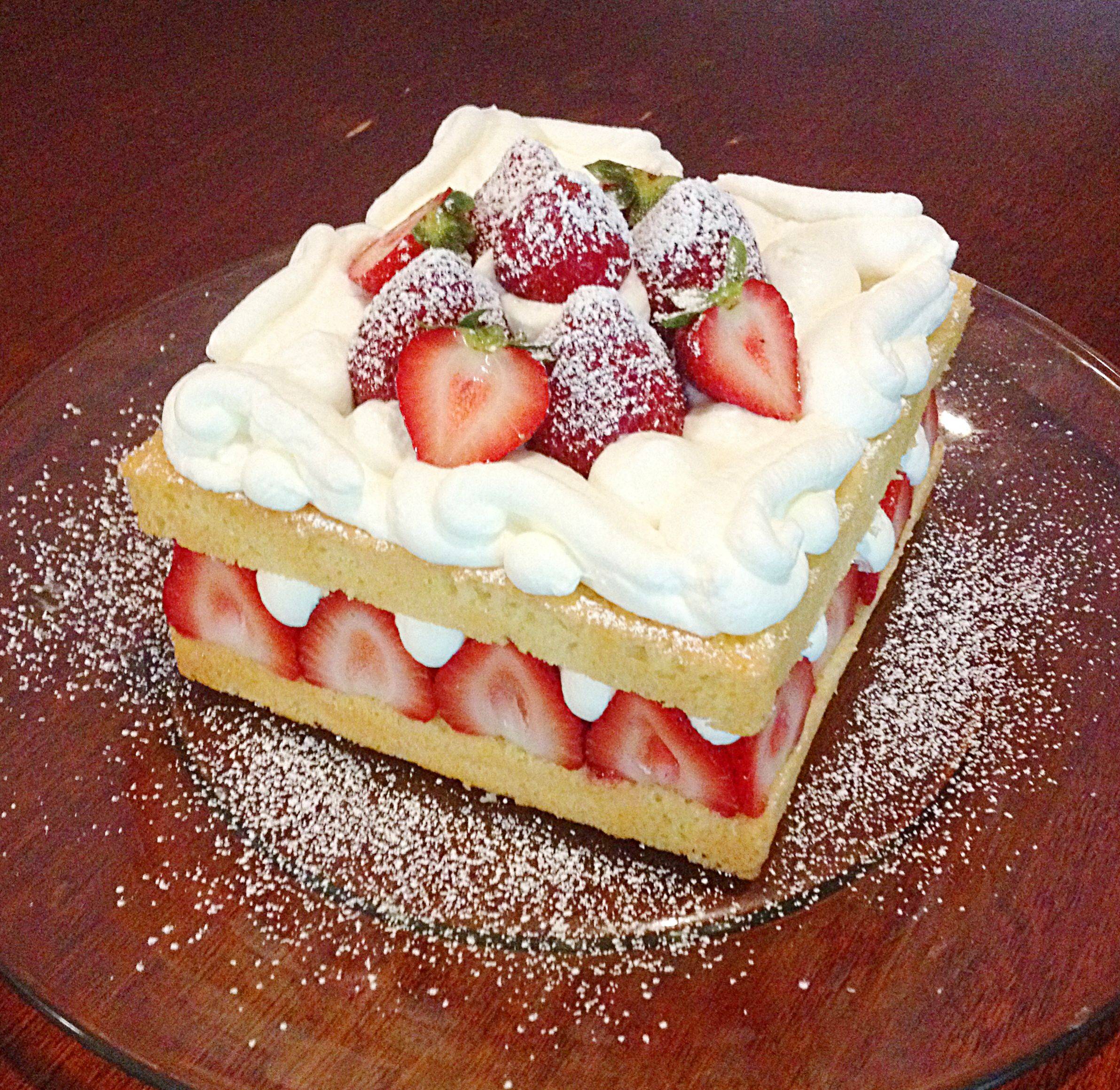 While the shortcake cools, make whipped cream and prepare the strawberries.