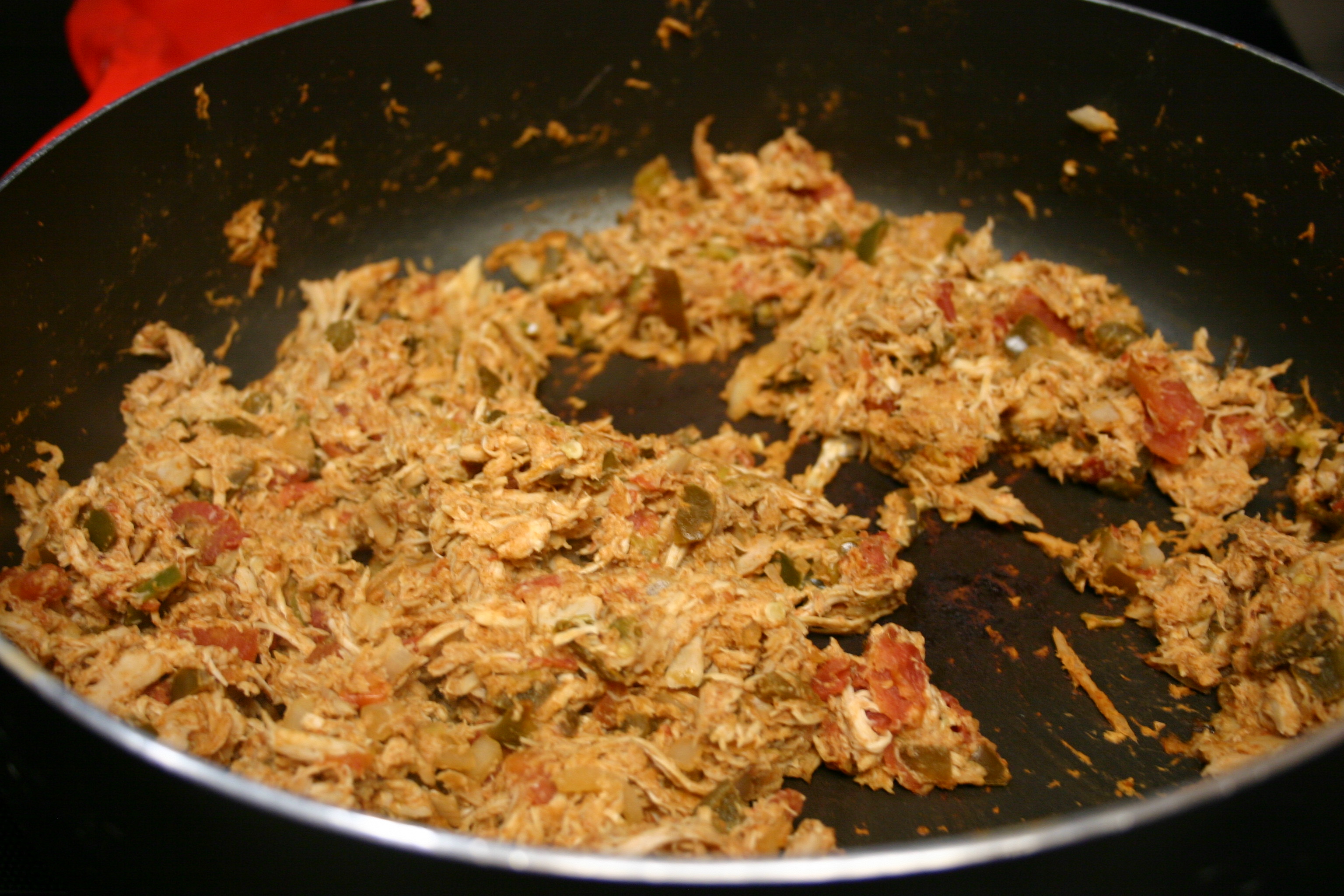 Stir in the chicken, taco seasoning, tomatoes and diced jalapeno peppers. Stir to combine fully. Reduce to simmer and allow to cook for about 8 minutes.