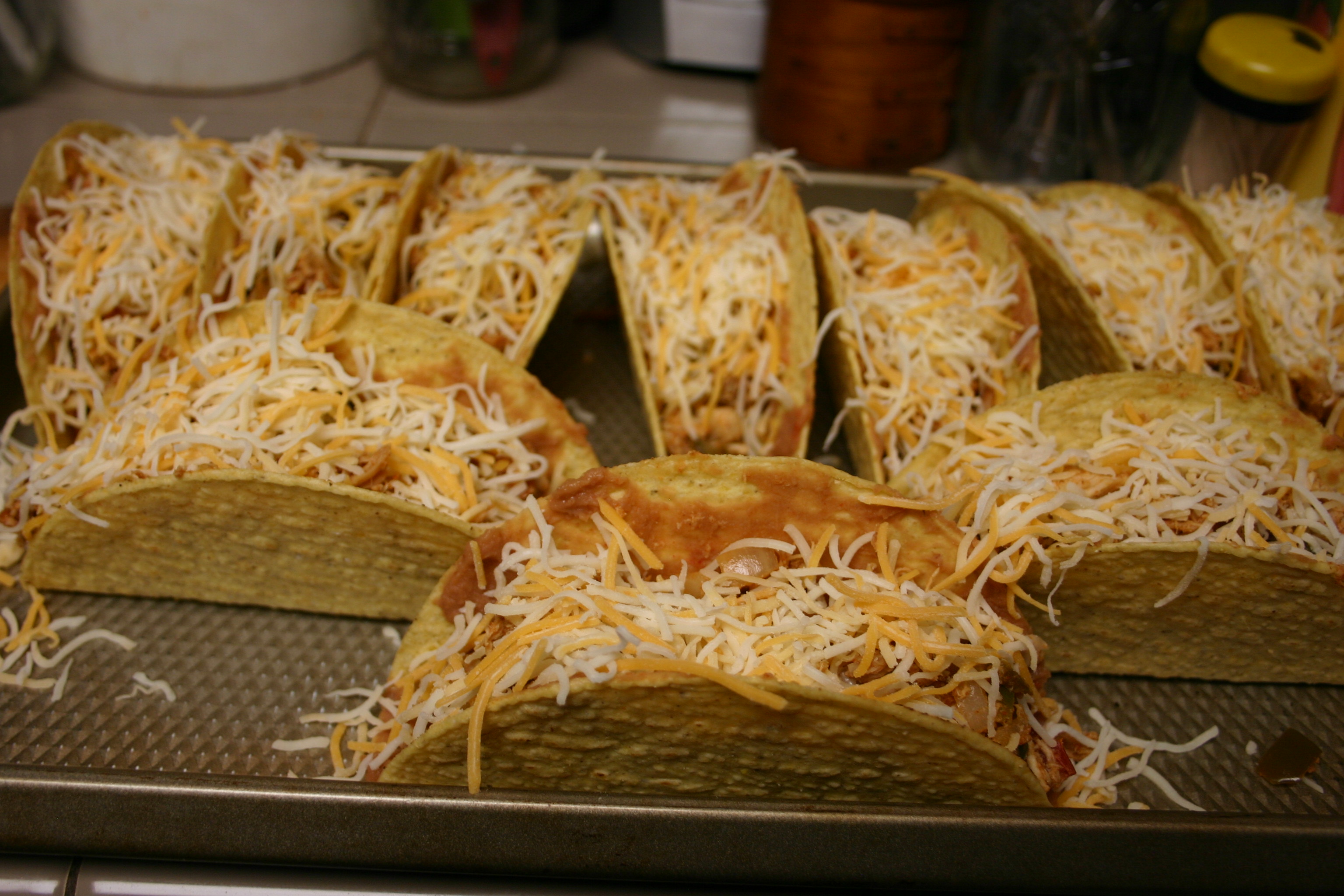Sprinkle each shell generously with shredded cheese, the more the better!