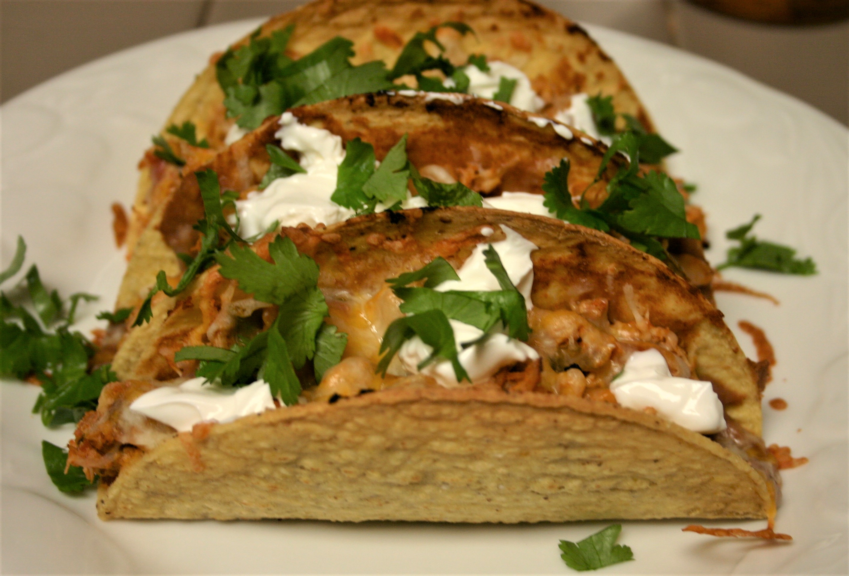 Remove tacos from oven. Garnish with cilantro and sour cream. Serve and enjoy. Great with a side of rice and margaritas.
