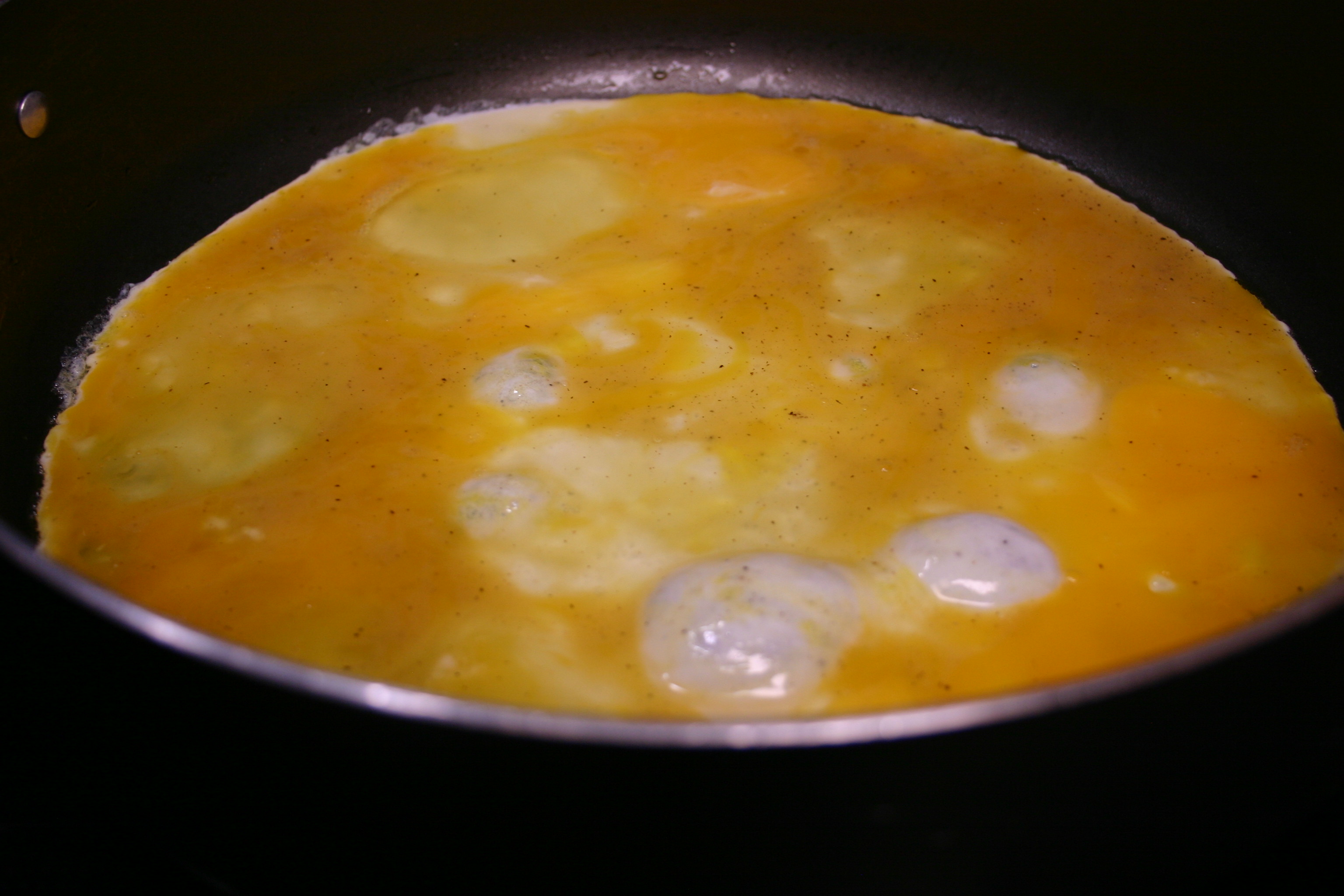 Heat 1 tablespoon Jalapeno Olive Oil in the now empty skillet over medium heat. Cook and stir eggs in the hot oil until mostly cooked through, about 1 or 2 minutes. Transfer eggs to a plate, tent.