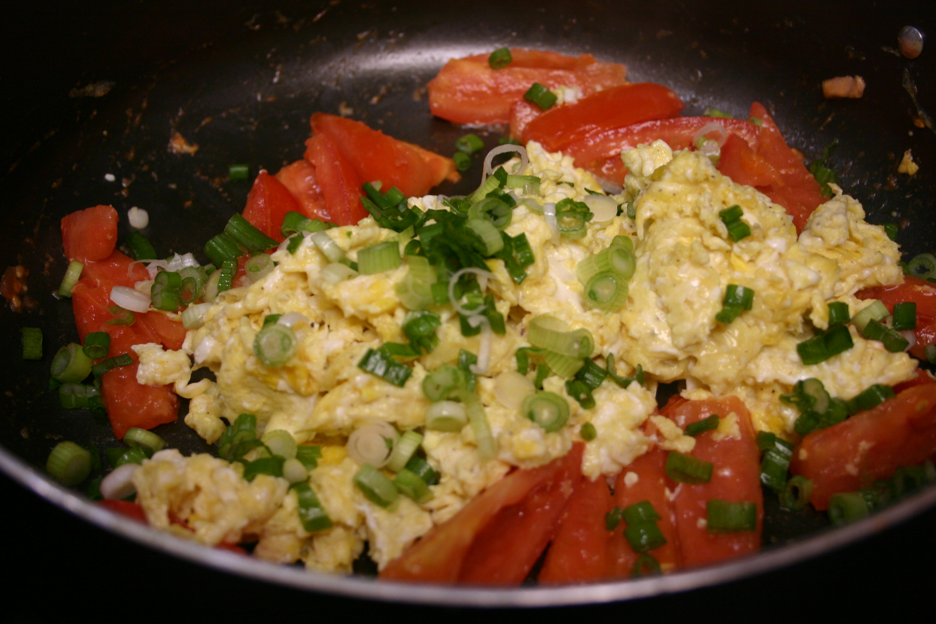 Pour remaining 1 tablespoon Jalapeno Olive Oil the skillet; cook and stir tomatoes until liquid has mostly evaporated, about 2 minutes. Return eggs to the skillet. Scatter with green onions; cook and stir until eggs are fully cooked, about 30 seconds more.