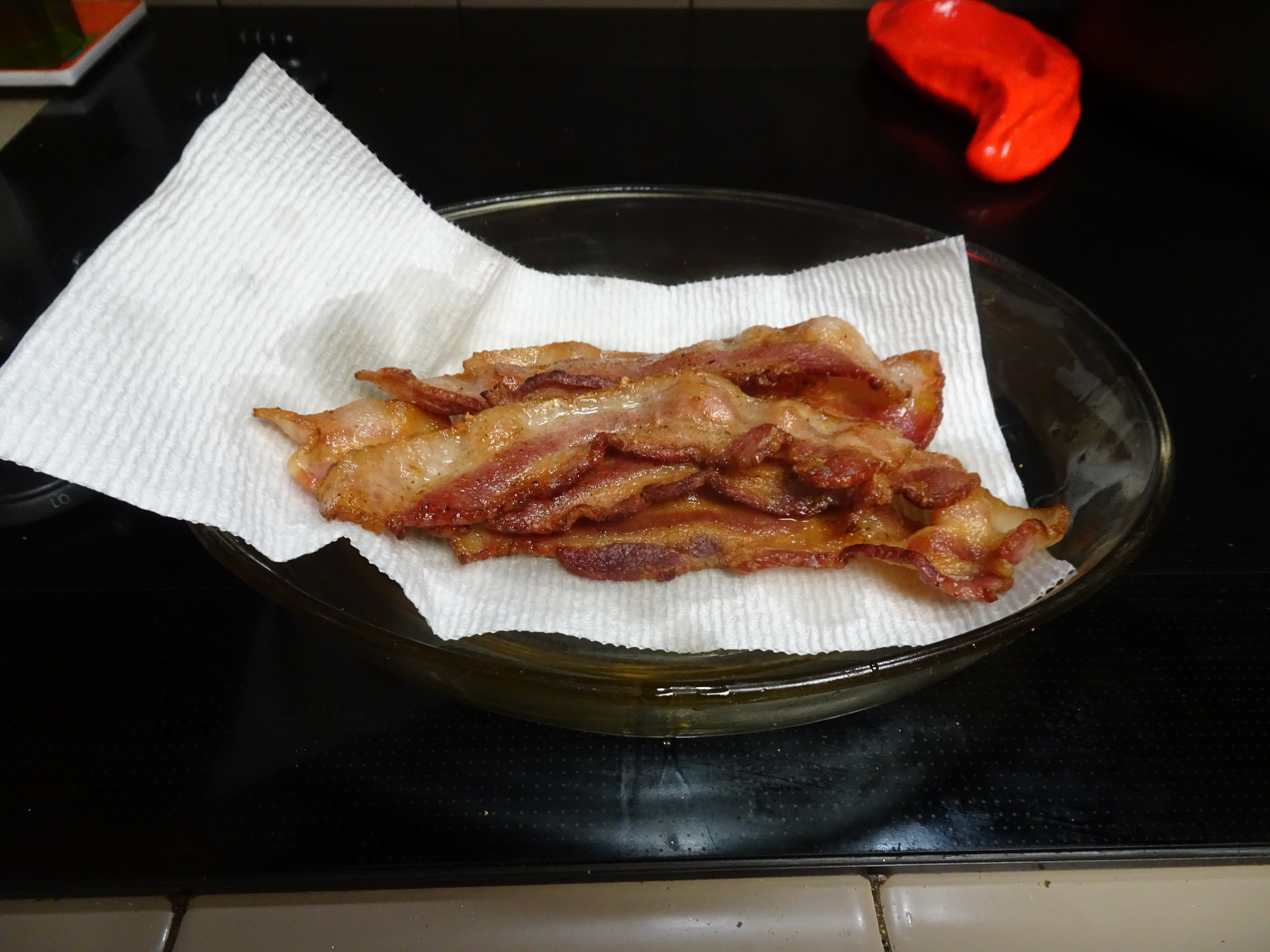 While bacon is frying, wash lettuce and dry with a paper towel. Slice tomato and set aside.