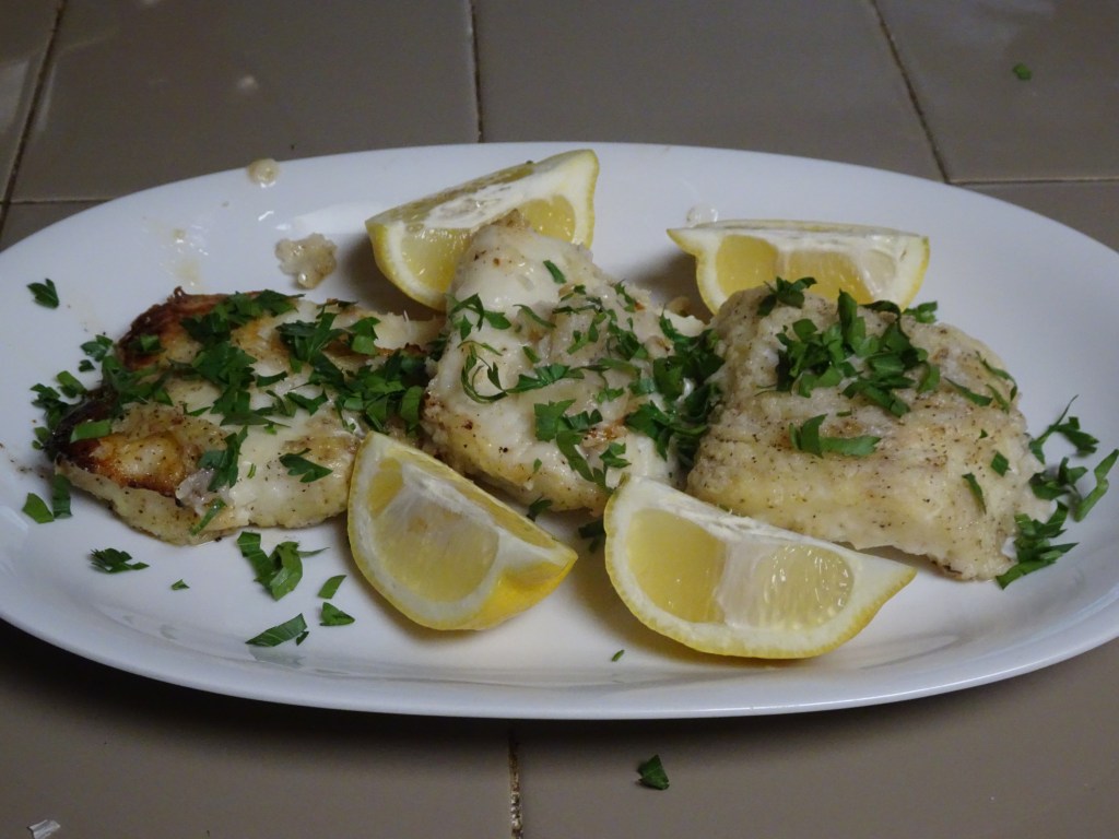While the cod bakes, cut lemon into wedges, set aside. Mince parsley for garnish, set aside. Transfer fish to a serving platter. Garnish with parsley and lemon wedges. Serve and enjoy.