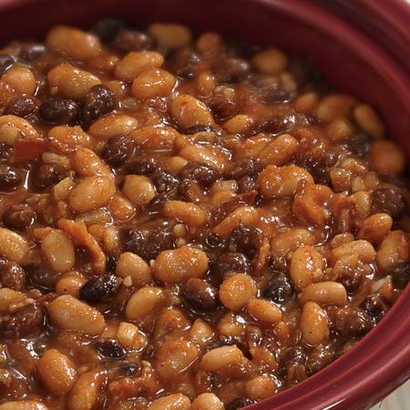 Pour sauce over the beans. Stir to blend. Sprinkle crumbled bacon on top. Cover and simmer on LOW setting for about 4 hours. Serve straight from the slow cooker.