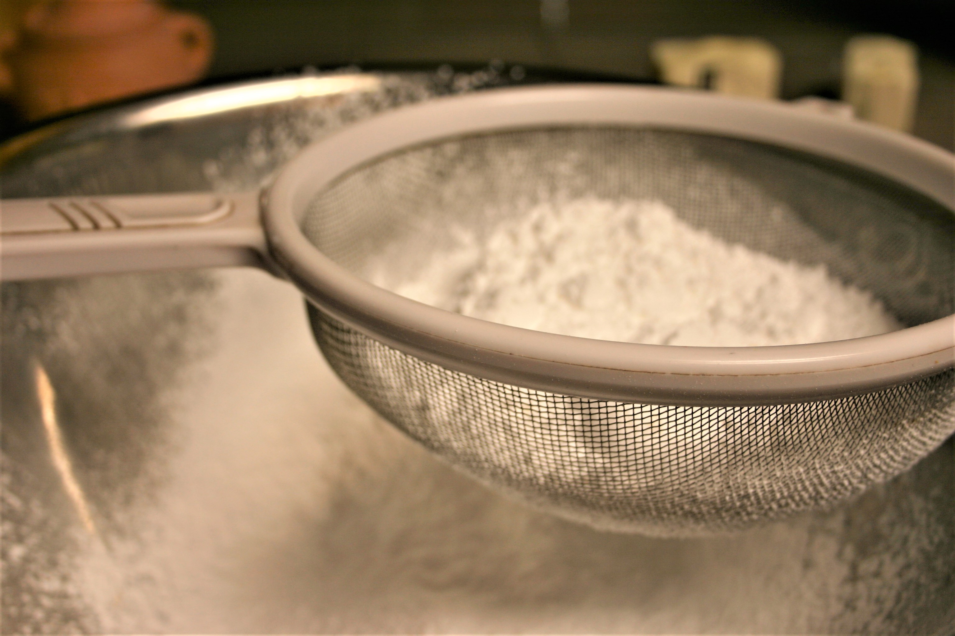 Cream butter with vanilla in a mixing bowl. In a separate bowl, sift powdered sugar.