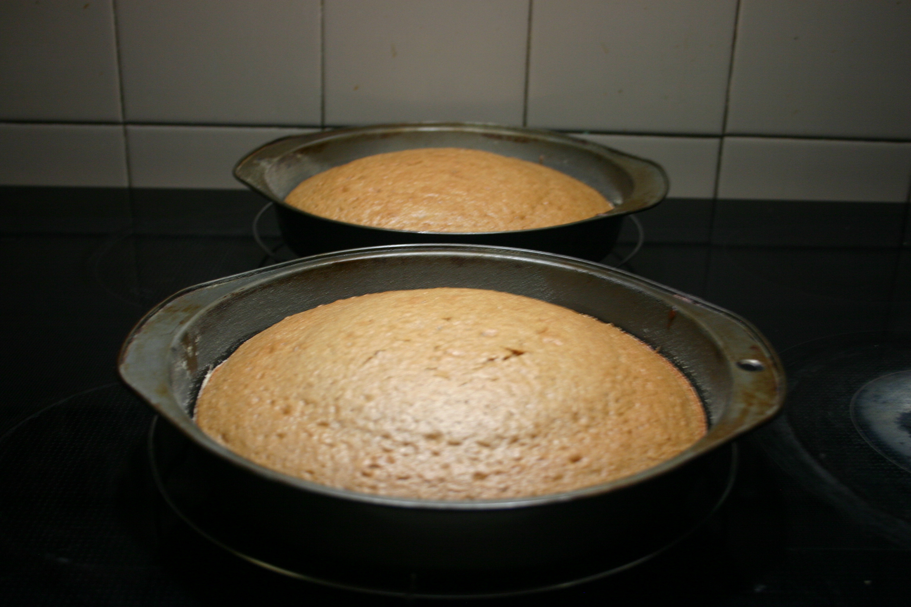 Place pans in the oven to bake for 10 minutes. Rotate pans, bake an additional 10 minutes. Check cake for doneness, continue to bake another 2 minutes or so if necessary.