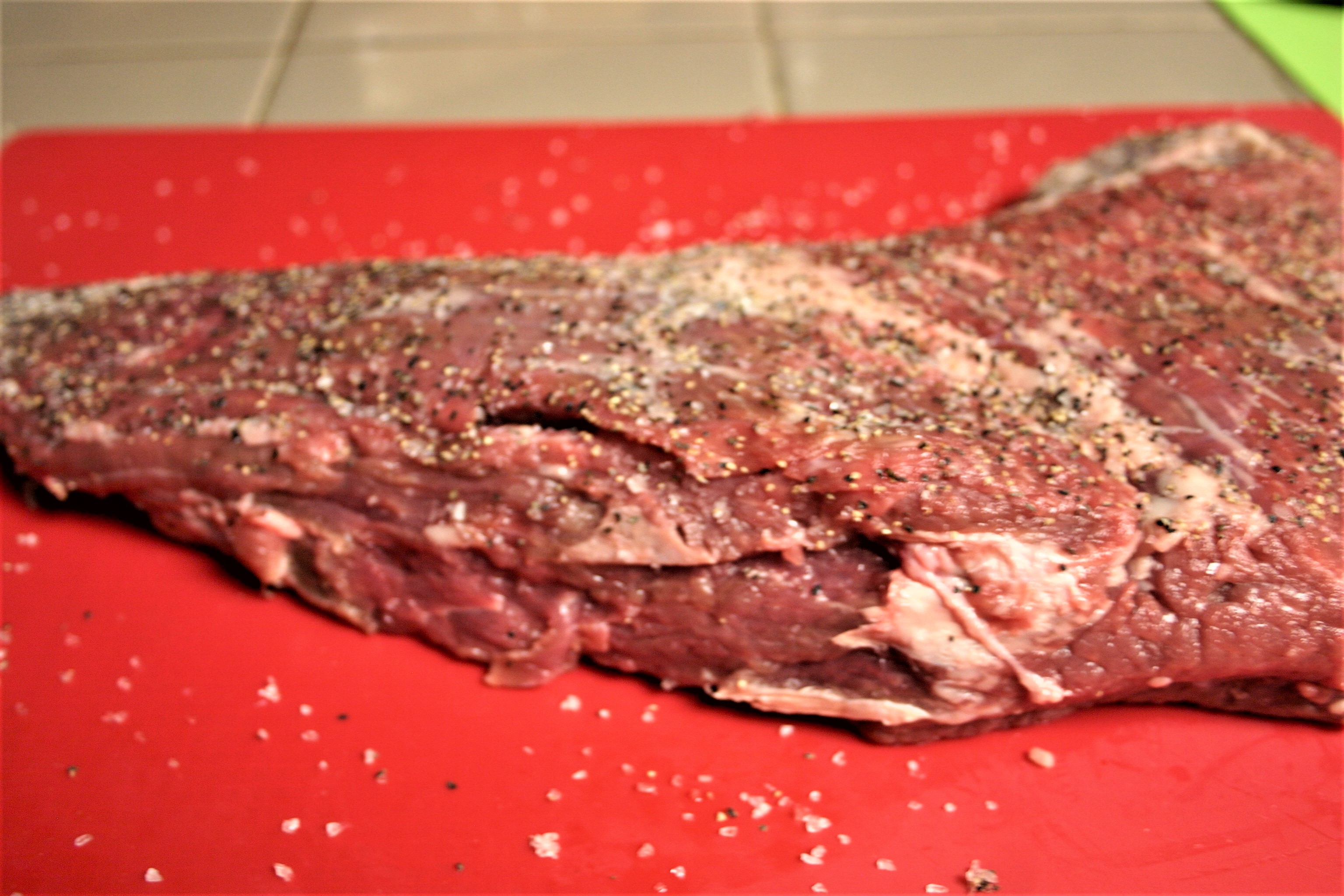 Trim Tri-Tip. Rub well with salt and pepper. Place Tri-Tip in a gallon size resealable bag. Place in a dish to catch any liquid that may drip out during marinade.