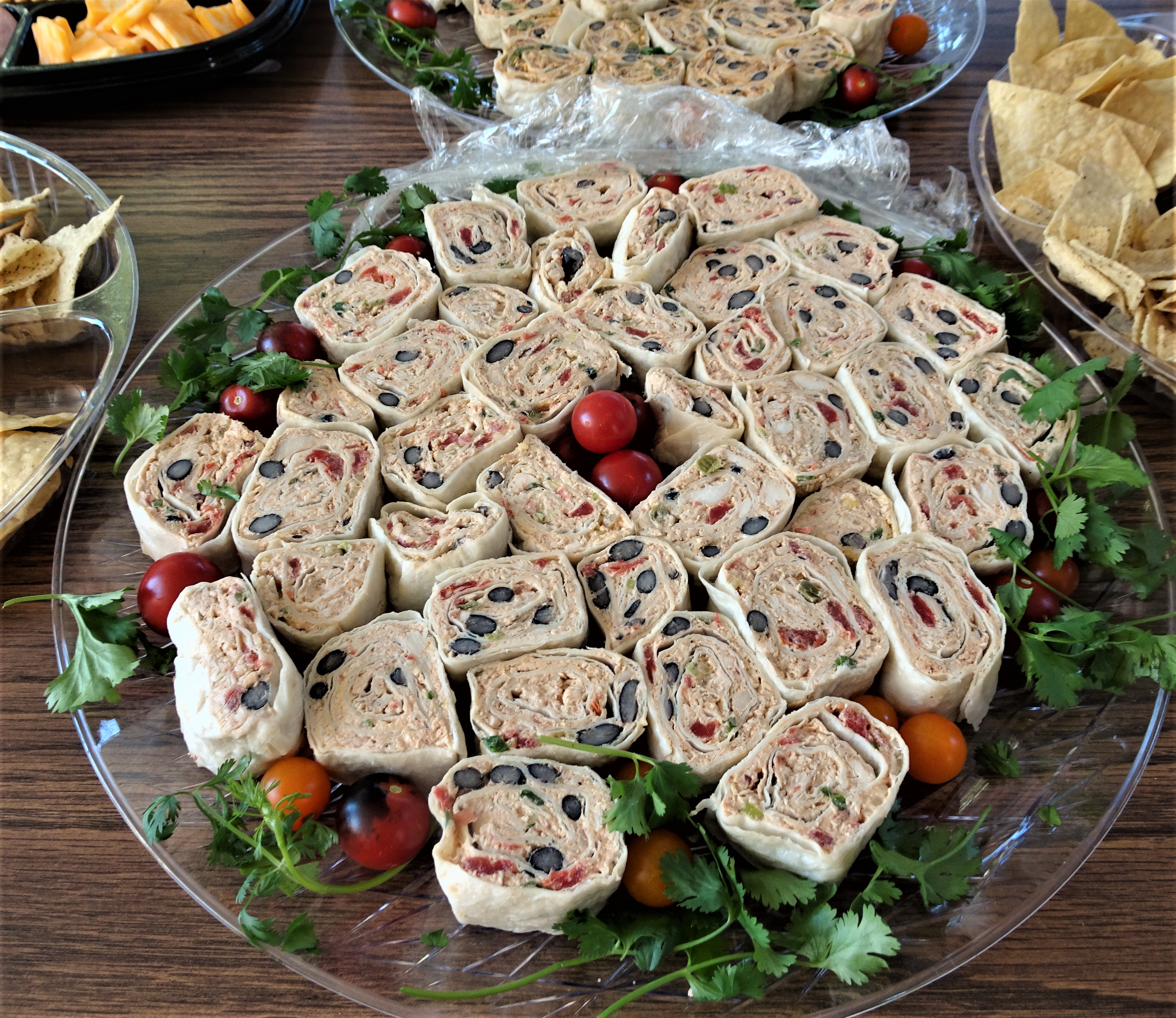 Place tortilla wraps in the refrigerator to chill for several hours. Remove from the refrigerator, unwrap and slice into 2-inch pieces. Place in an air-tight container, cover with a layer of plastic wrap and close lid. Hold in the refrigerator until ready to pack for a picnic.