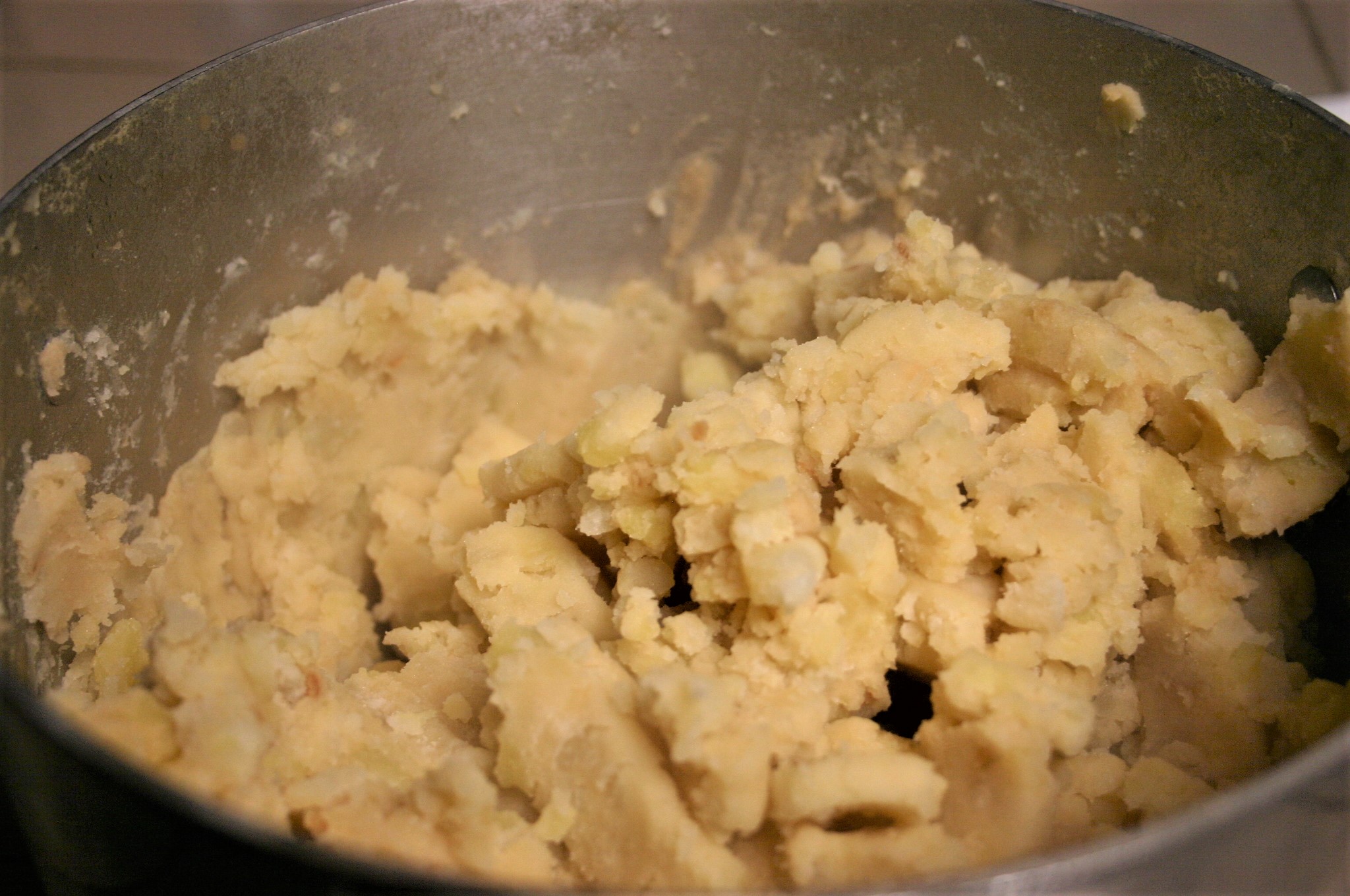 Drain potatoes thoroughly and return to pan over low heat. Stir for 1 minute to burn off any excess water. Remove from heat.