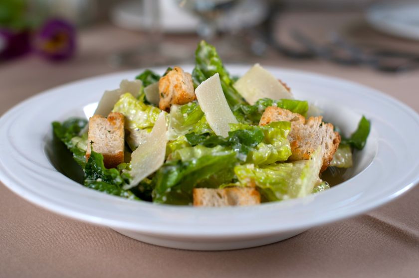 Tear lettuce leaves into large bite-size pieces. Place in a bowl and add a small amount of Caesar Dressing on lettuce leaves, just enough to lightly coat leaves, toss to blend.