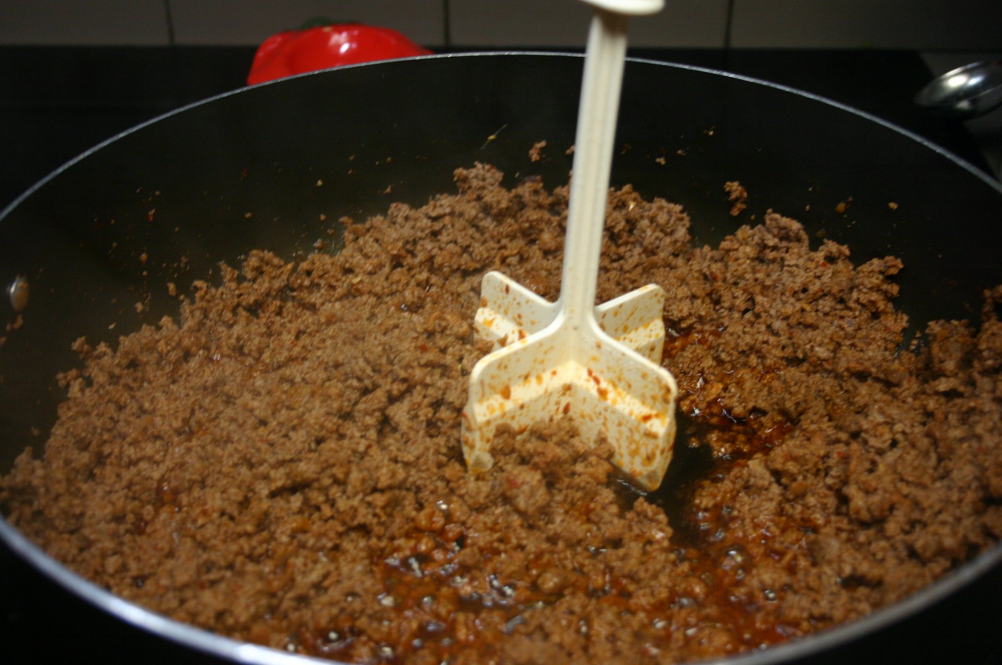 In the now empty skillet brown ground beef with chorizo, breaking apart as it cooks. Season with tacos season. Drain well and keep warm.