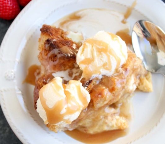 À La Mode Brioche Bread Pudding with Salted Caramel Sauce
