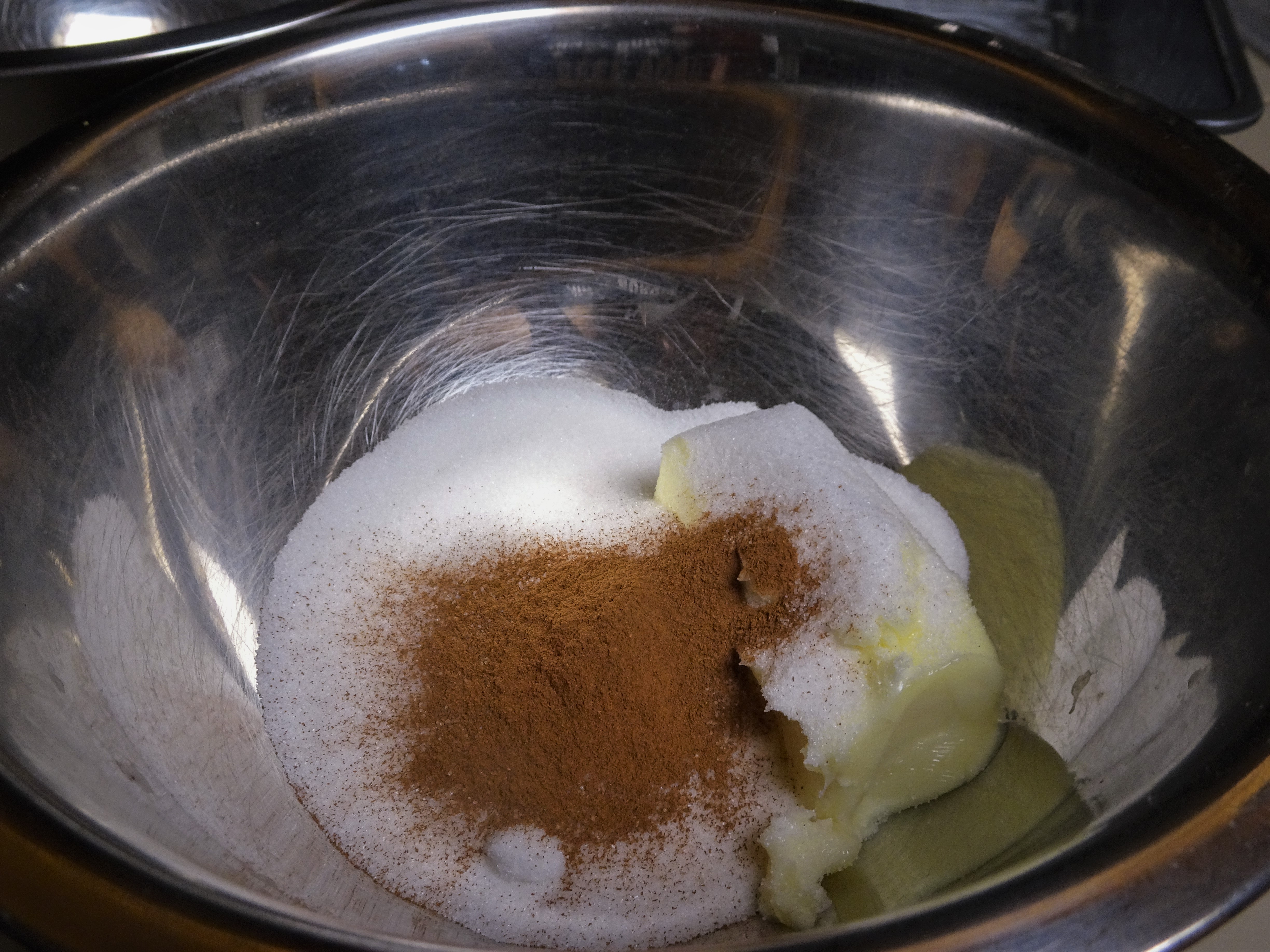 In large bowl, beat sugar, cinnamon and butter with spoon until light and fluffy. Beat in eggs. Stir in bananas, milk and vanilla until well blended.