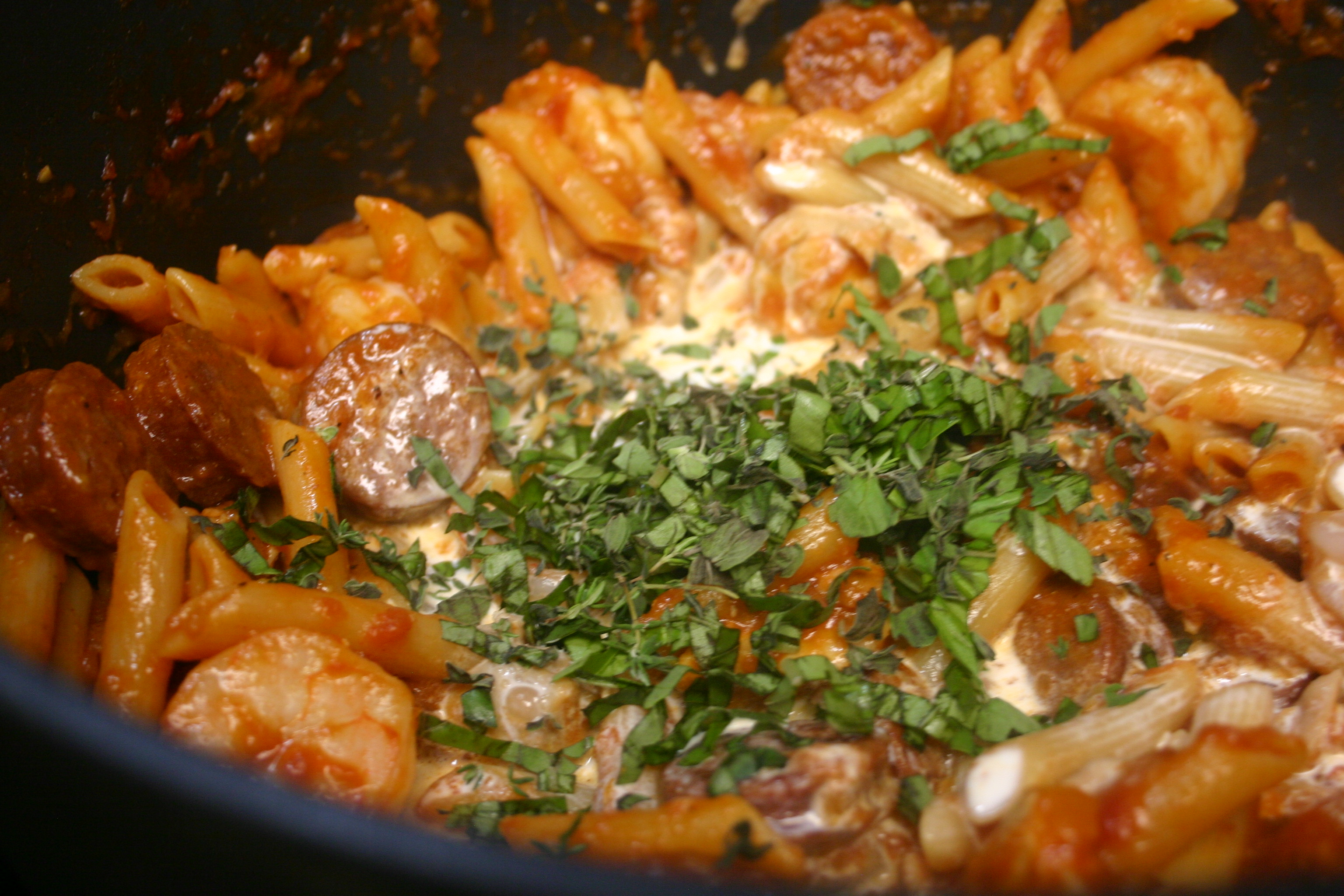 Stir in cream. Add thyme, oregano, and basil. Cook until just heated through, 4 minutes more. Ladle Pastalaya into bowls.