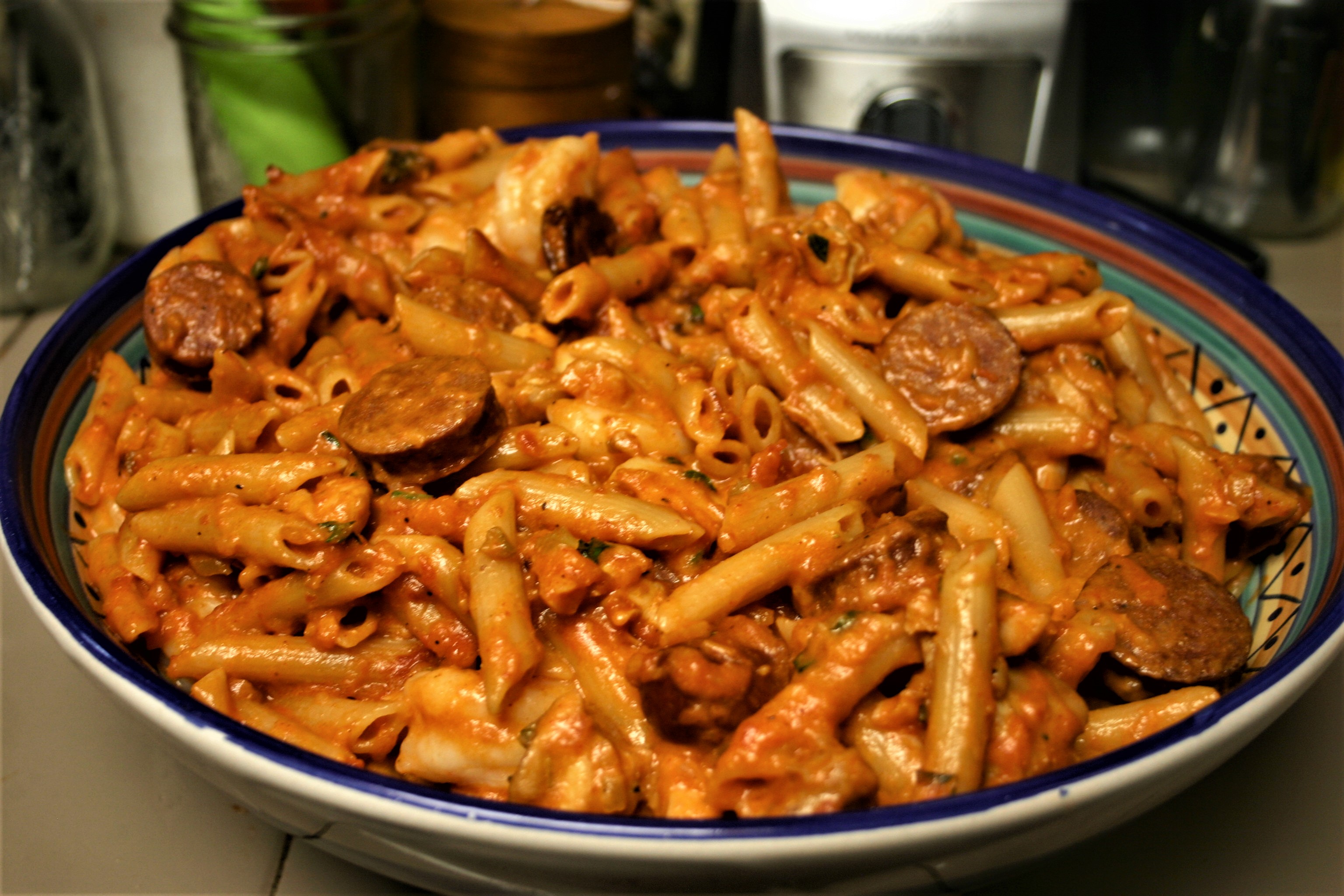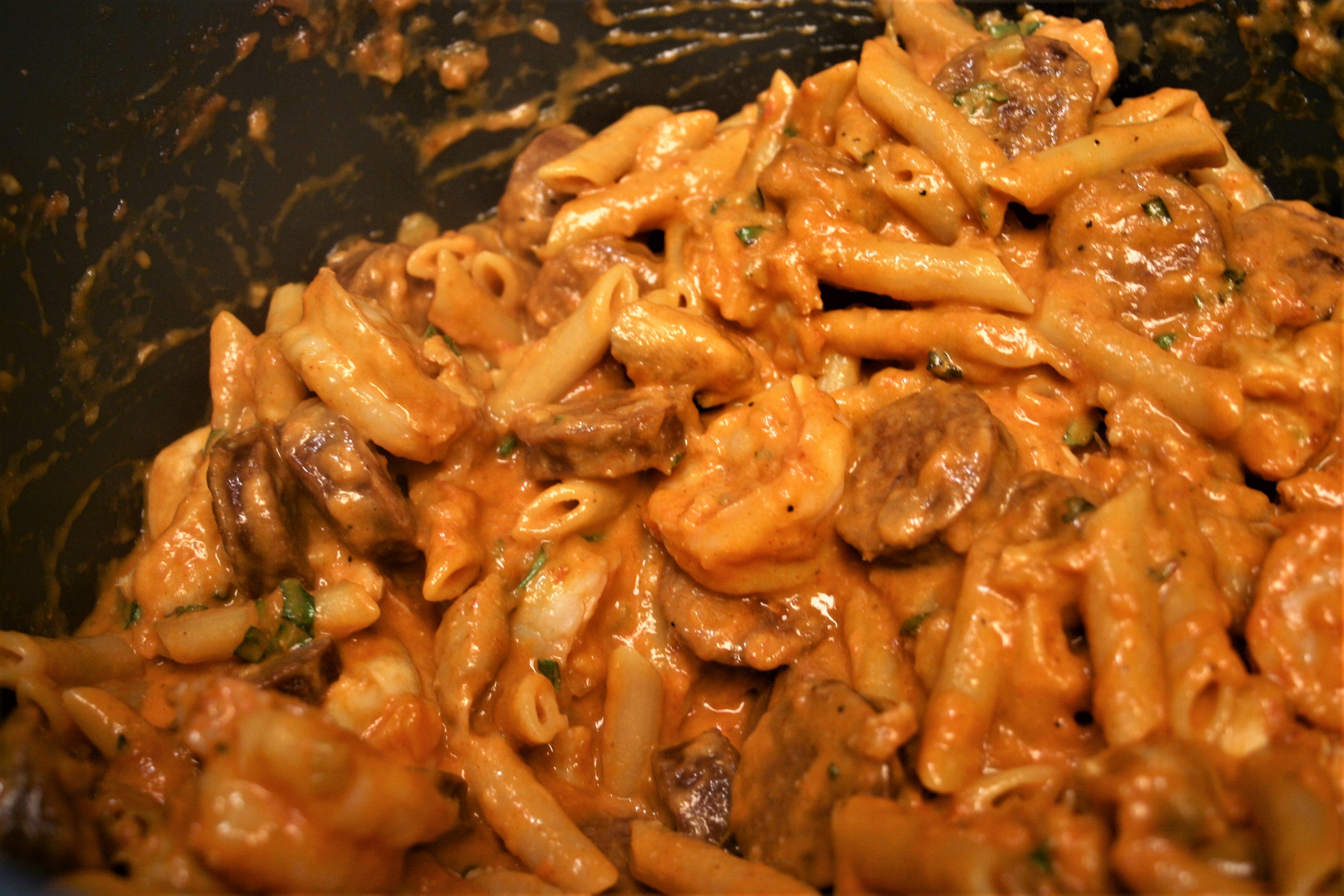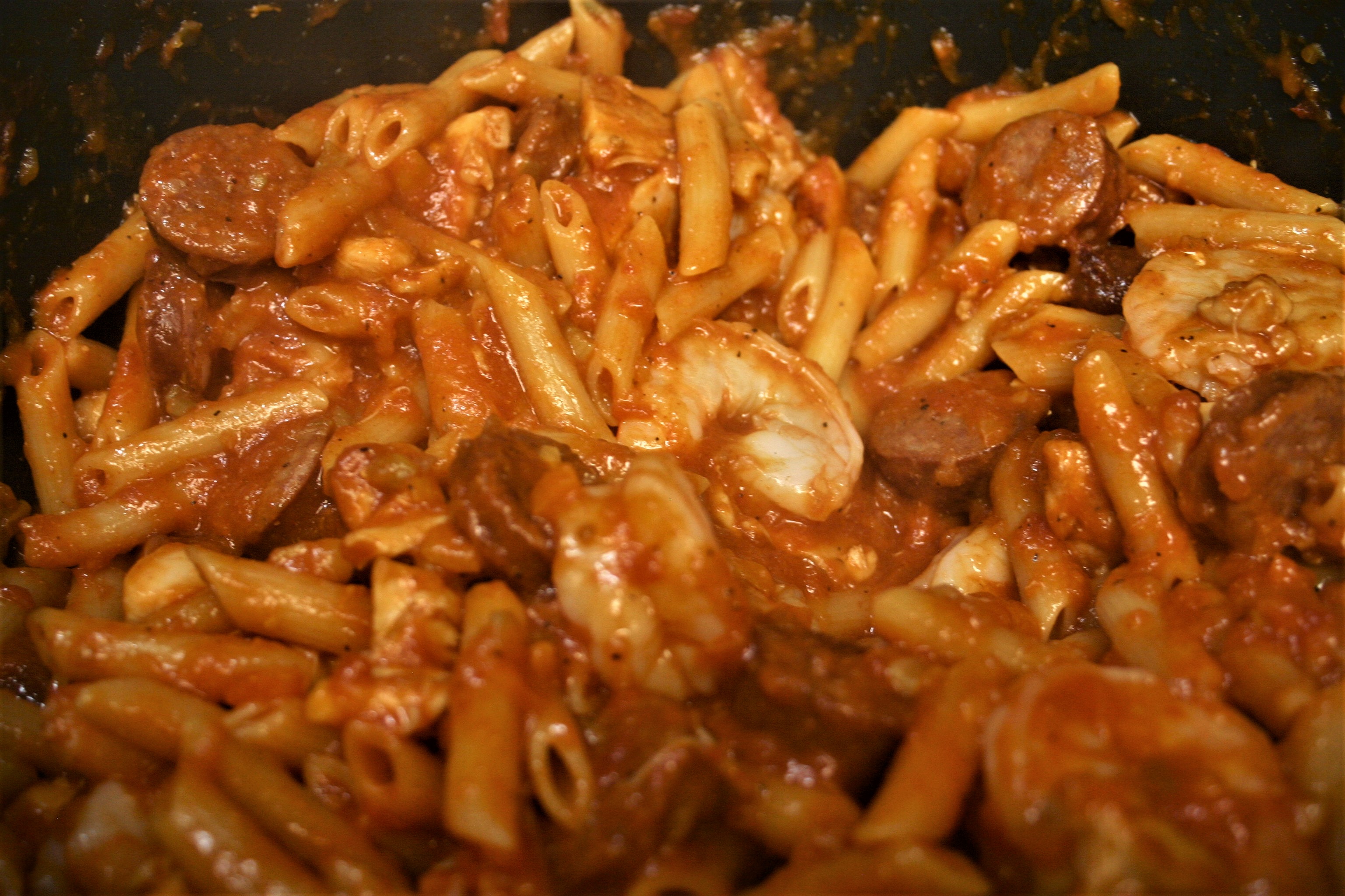 Oh, and one more thing – Pastalaya is just what it sounds like. It is what happens when Jambalaya and Pasta meet. Like any self-respecting Cajun dish, the Holy Trinity of Onions, Celery and Bell Peppers are the key. Add to that Sausage, Chicken and Shrimp, it truly is a bountiful feast from above. Enjoy!