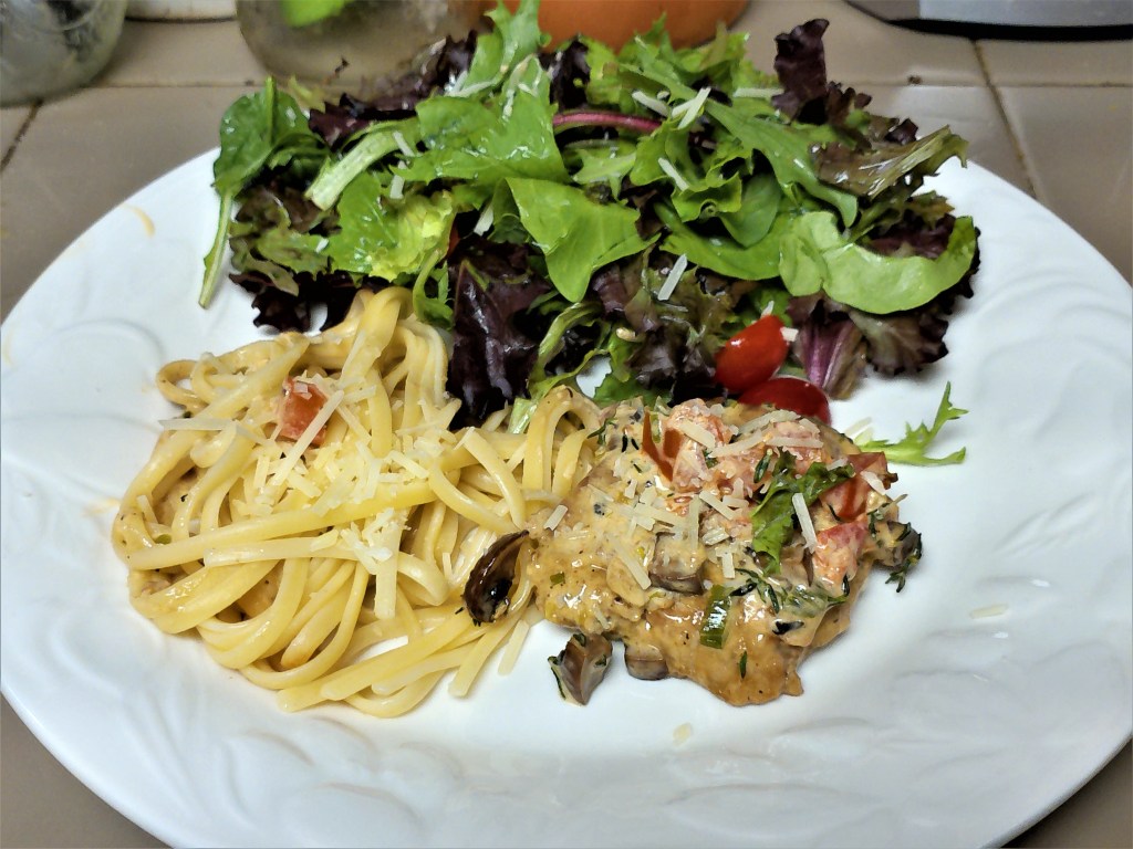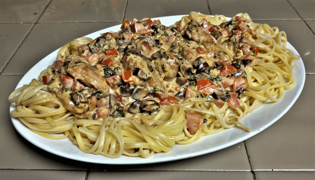 Brandy Cream Pork Medallions on a Bed of Linguine