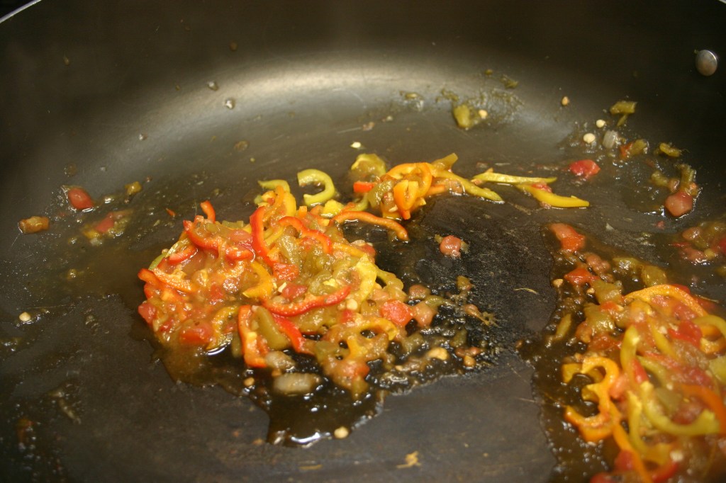 Heat a 10-inch skillet over medium-high heat. Add salsa and minced peppers. Sauté until warm.