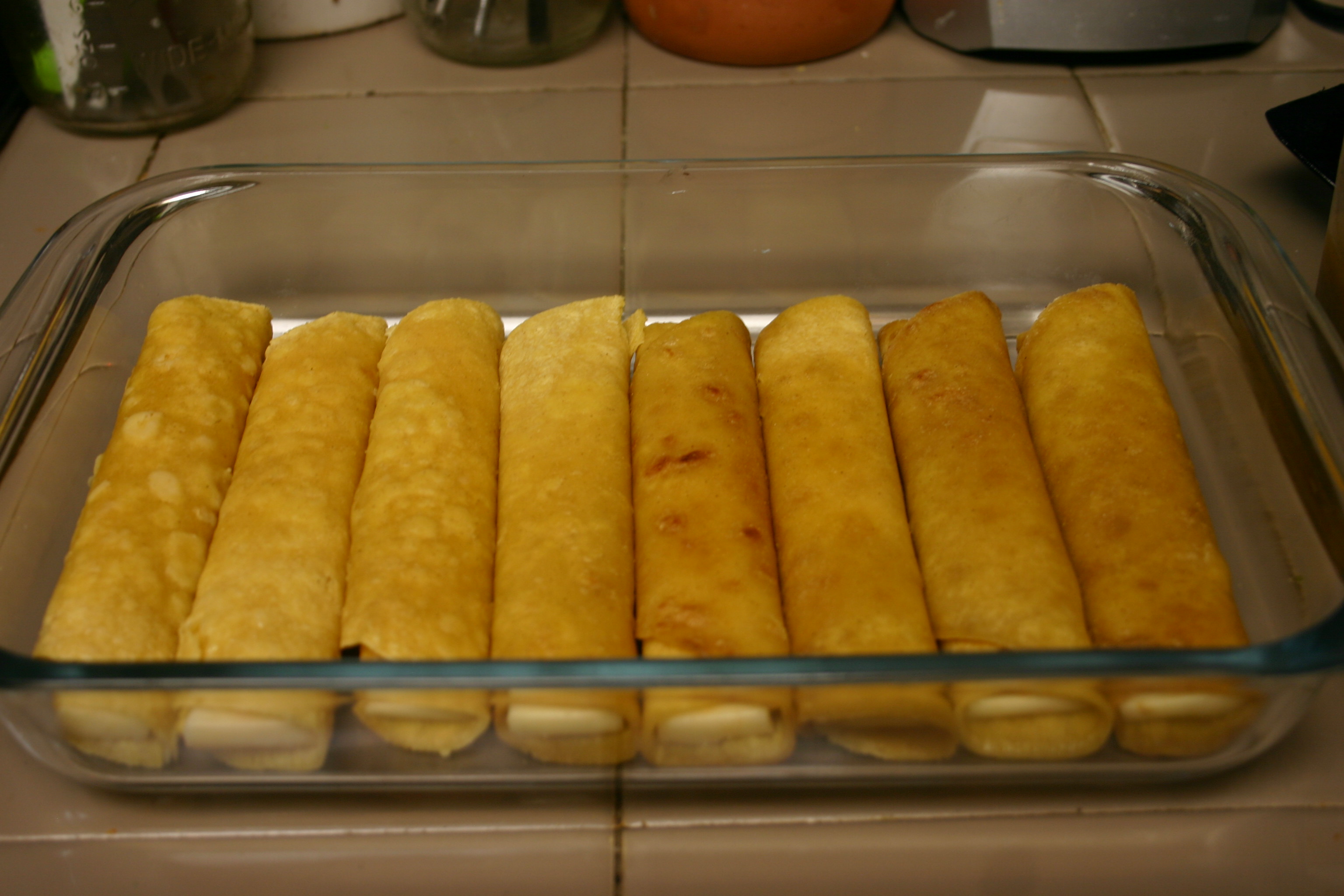Unwrap cheese sticks. Place 1 stick in the center of each tortilla. roll tightly. Trim excess cheese as needed. Place in a casserole dish, seam side down. Pour salsa over the taquitos.