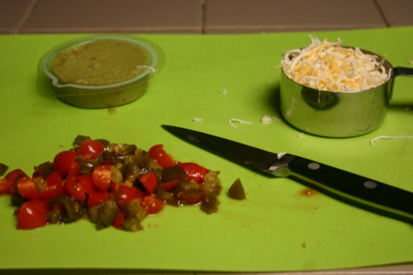 Dice the tomato and set aside. Dice Nacho jalapeno slices, set aside.