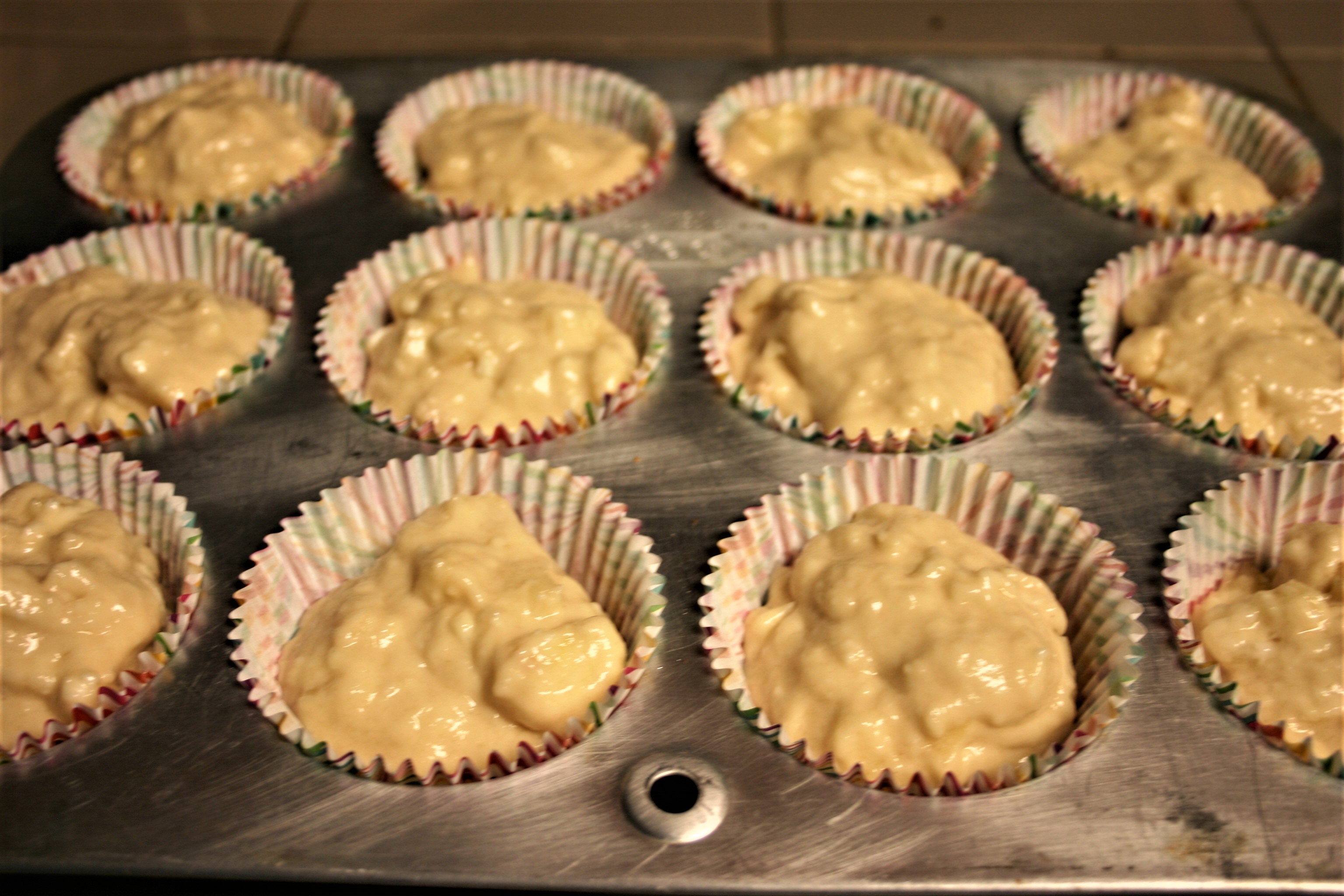 Heat oven to 350-degrees. Line a regular 12-cup muffin tin with paper liners, set aside.