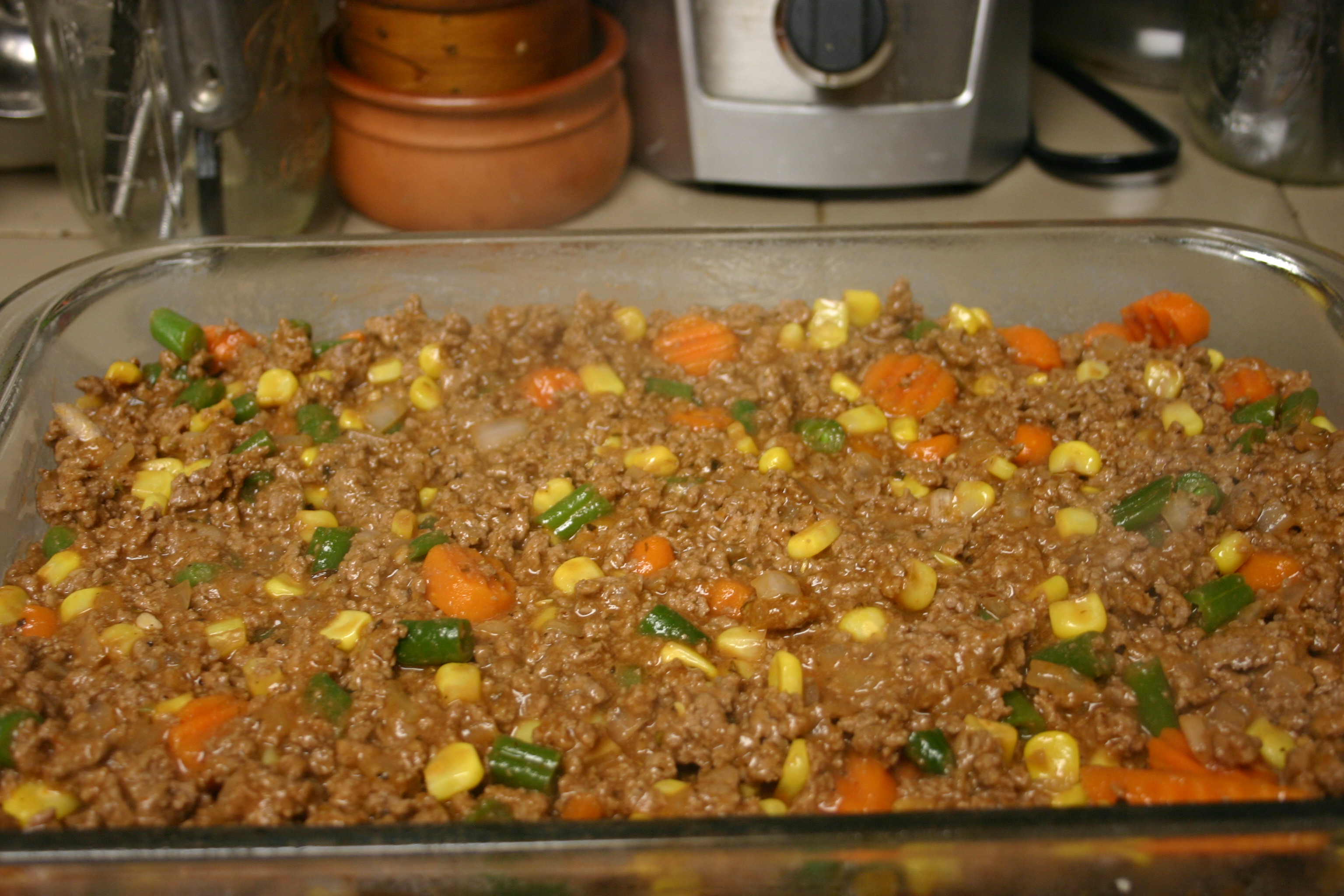 The nice thing about a Shepherds or Cottage Pie is that it’s an entire supper in a single dish. You’ve got your meat, your vegetables, mashed potatoes and some sort of gravy. For people who do not like their foods to touch, this dish must make them nuts. While I didn’t freak out as a kid if my foods touched, I did eat each dish separately. All the vegetables, then the rice or mashed potatoes, then the meats. Hamburger? The burger first, then the fries, followed by the shake. Thank goodness I’ve outgrown than obsession. There is pleasure in flavors and textures co-mingling in my mouth. Both Hubby and I like to mix our Mexican Rice and Refried Beans together. What about you?