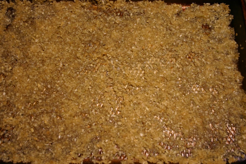 In a microwave safe bowl, mix together the onion flakes with beef stock. Warm in the microwave for about 15 seconds. Spread onion mixture in a 10-inch by 15-inch jelly roll pan. Set aside.