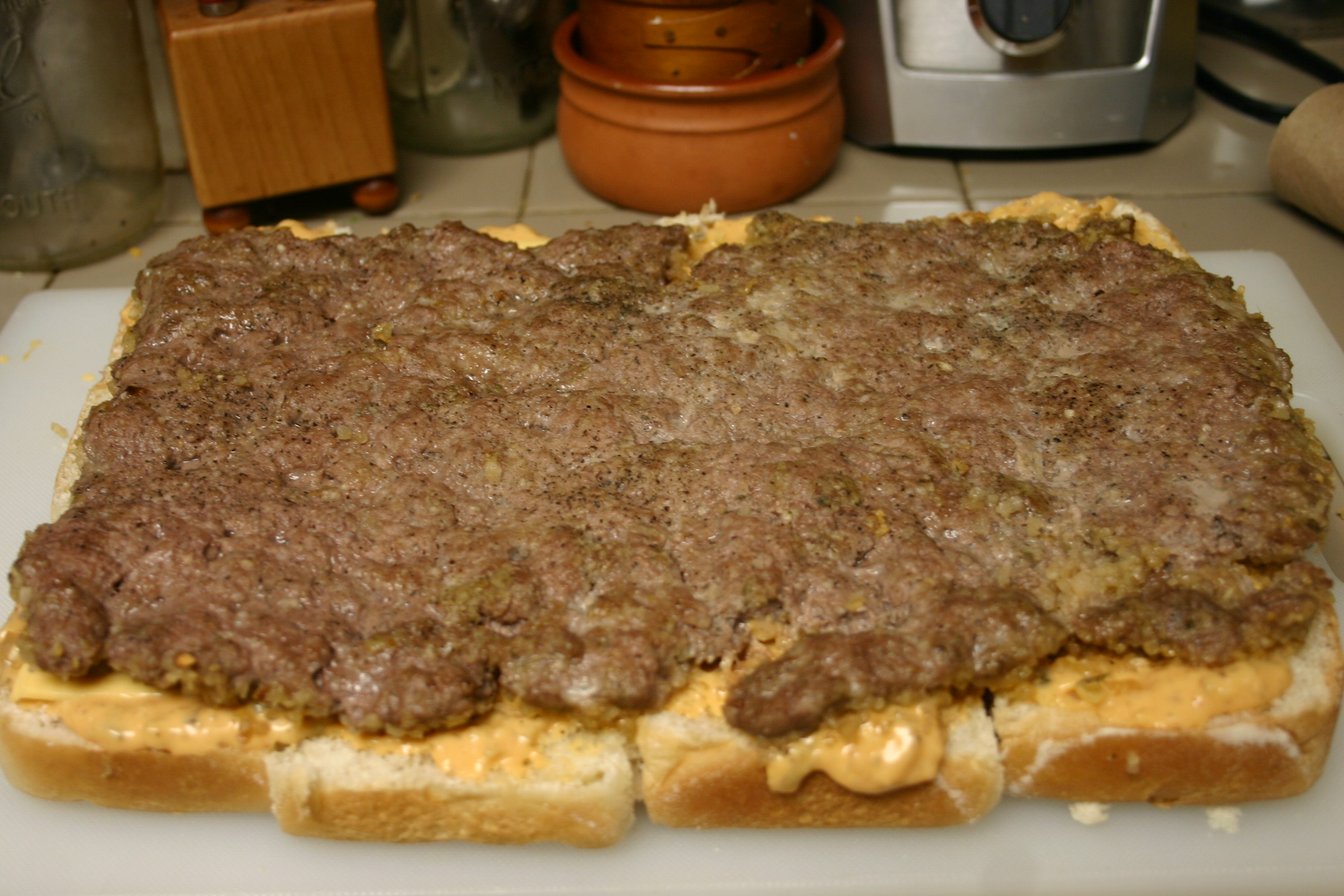 It means Wednesday night suppers need to be quick, satisfying and easy to clean up after. Originally for a Wednesday supper I had planned to make Oven Burger Bites, a copy-cat of White Castle Burgers. It met all the Wednesday Night criteria. But then I got to craving a Big Mac. While I do make a great copy-cat Big Mac complete with my own take on the Secret Sauce and a third bun, I thought it might be fun to play around with the Burger Bites. I’m oh so glad I did. Very filling, very satisfying. Perfect for a busy Lecture night.