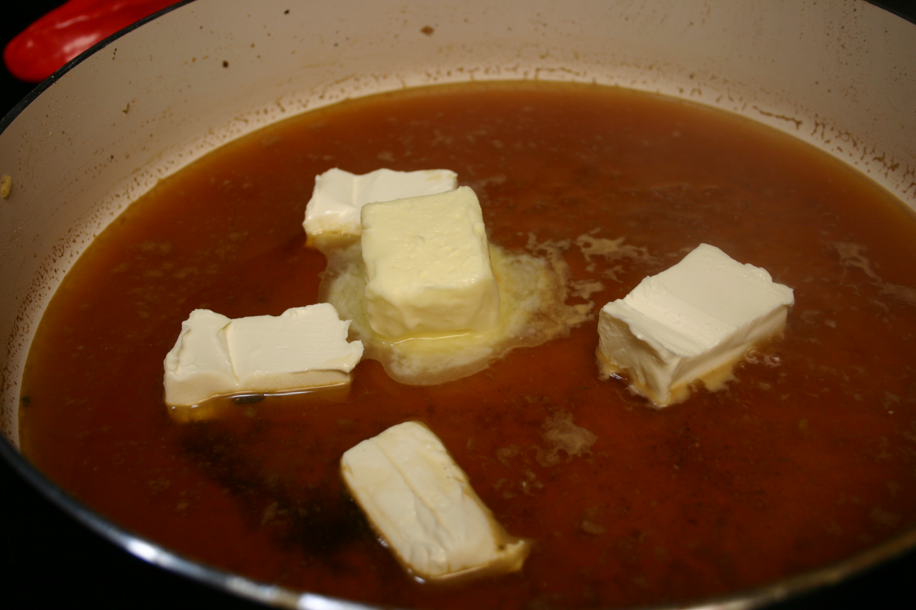 Let cream cheese and butter soften while Half-and-Half comes to room temperature.