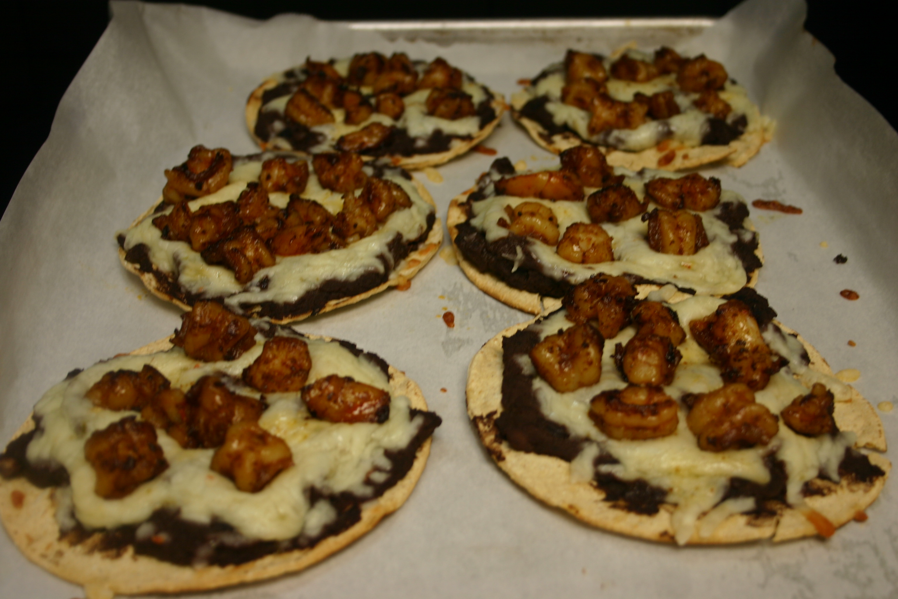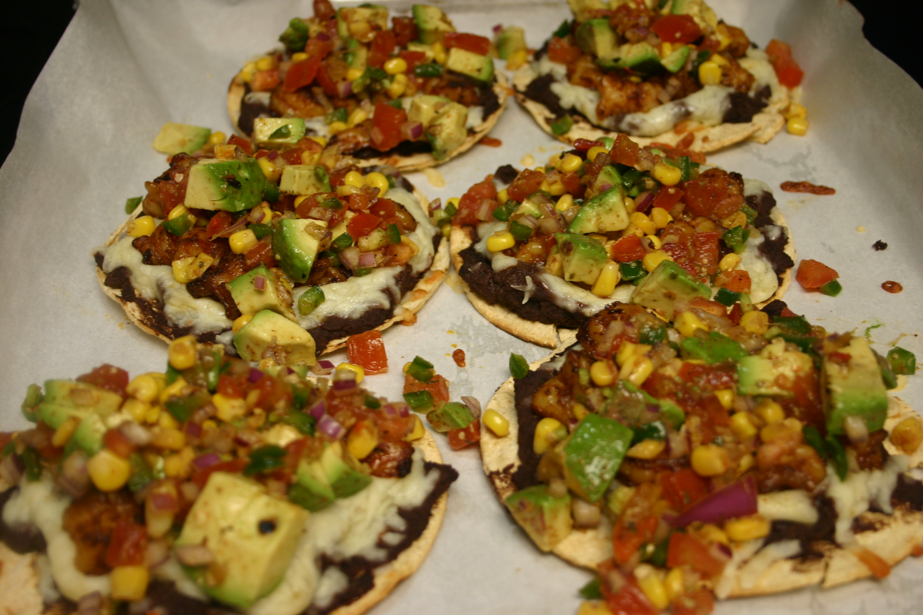 Shrimp and Black Bean Tostadas with Corn Salsa
