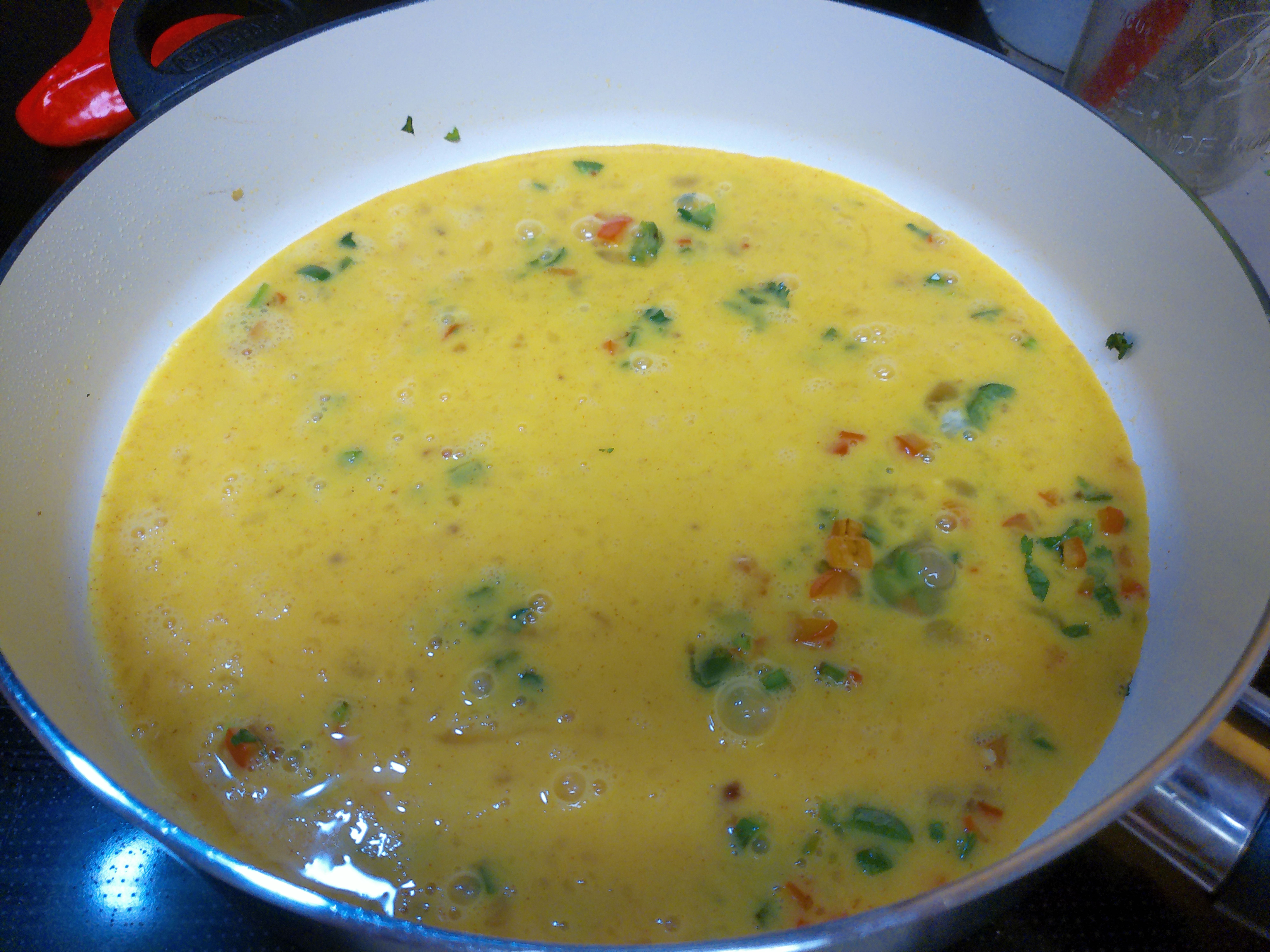 In a small bowl, whisk eggs with Cayenne Pepper, Cumin and Mexican Chili Pepper, set aside.