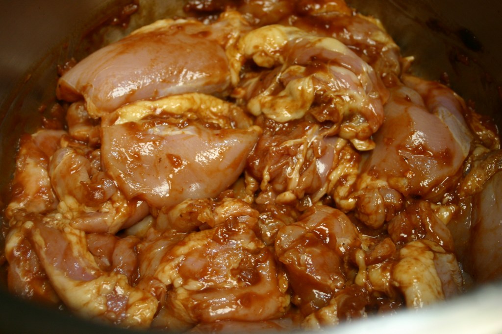 Remove from heat. Pour 1/2-cup of the barbecue sauce mix into the bottom of the slow cooker. Reserve remaining cup of sauce to finish the chicken.