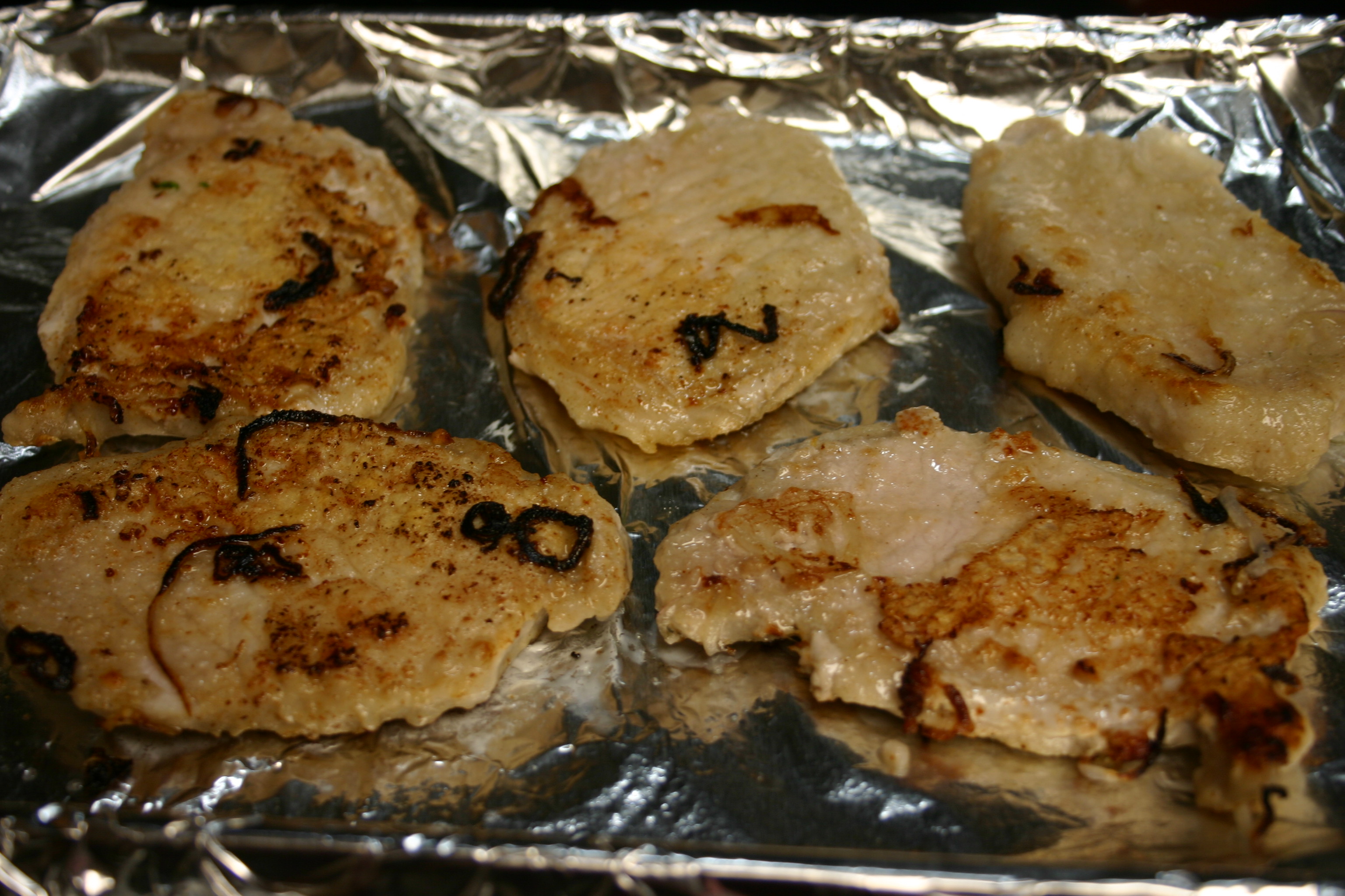 Remove from chops from the oven. Pour Piccata Sauce over the chops, garnish with parsley and enjoy.