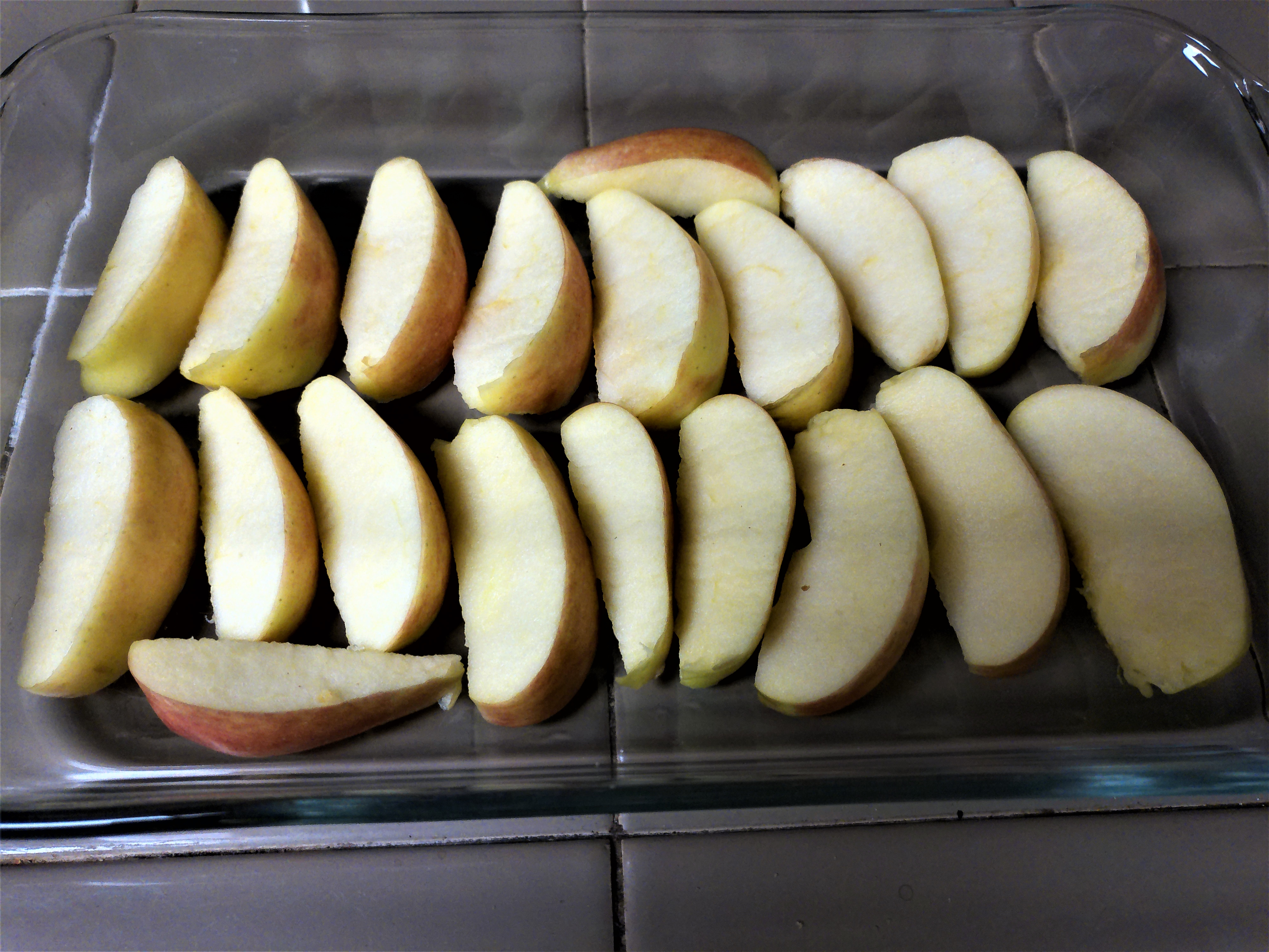 Typically we think of dishes that feature apples to be something we make in the fall, during apple harvest. This is especially true if you live not far from a place that specializes in apples such as the Apple Hill Area near Placerville, California. Growing up, we often packed a picnic lunch and made the trek up to Apple Hill. Hubby and I frequented the area when we were first married, but I must admit we don’t find it the same these days. There are a number of reasons. First, the apples are not as delicious as they once were. While I’m not an apple producer, I believe the whole tourist attraction has impacted the apples. There are cars and people all over the hill. At times on the weekends in the fall, it takes several hours just to get through all the congestion and crowds. Many of the growers have turned their orchards into parking lots at the height of the season, and I think this all has in impact on the fruit. I also think apple growing in the area reached its peak a while ago, and it’s time to rotate to a new crop. After all, those apple orchards have been there since the pear blight of the 1960s forced growers to abandoned their pears for apples instead. But I guess as long as the people keep coming, the lure of making a buck at the expense of quality will remain.