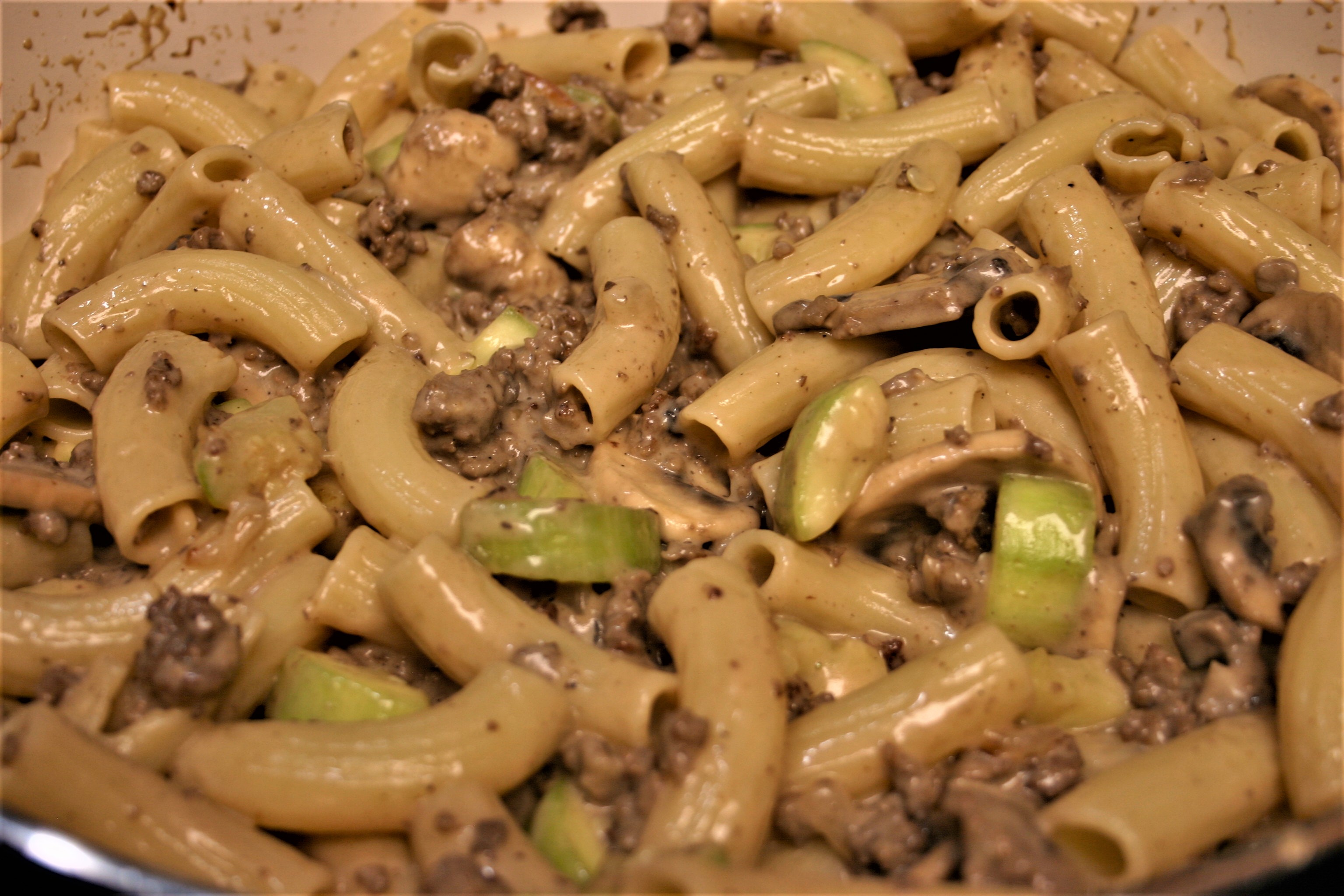 Beefy Zucchini Mushroom Rigatoni