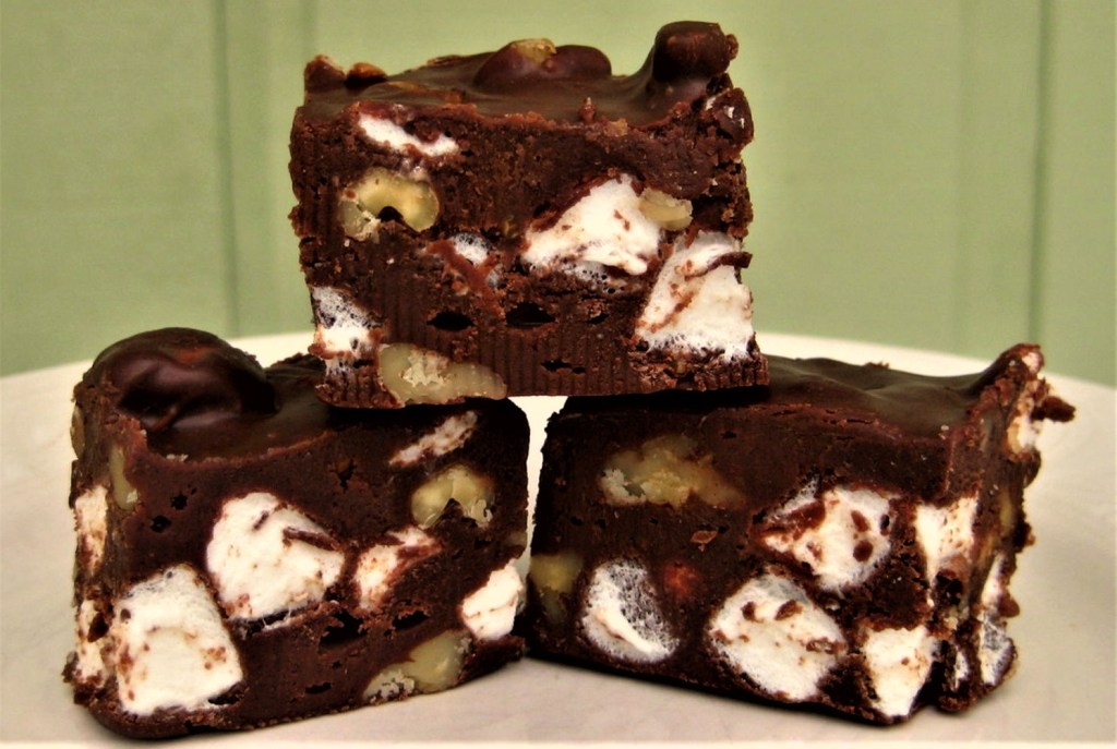 On the Secular Calendar, the first Friday in June is National Donut Day while June 2 is both Rotisserie Chicken Day and Rocky Road Day. Rocky Road got me to thinking – often walking a path of faith can seem a bit like a Rocky Road – filled with temptations, distractions and pitfalls. But the rewards of Rocky Road can be sweet. What is Rocky Road? It’s the addition of Marshmallows and nuts to things like fudge or ice cream. In this case, I’ve taken my favorite Fudge recipe, Fantasy Fudge, and made it “Rocky”. Enjoy!