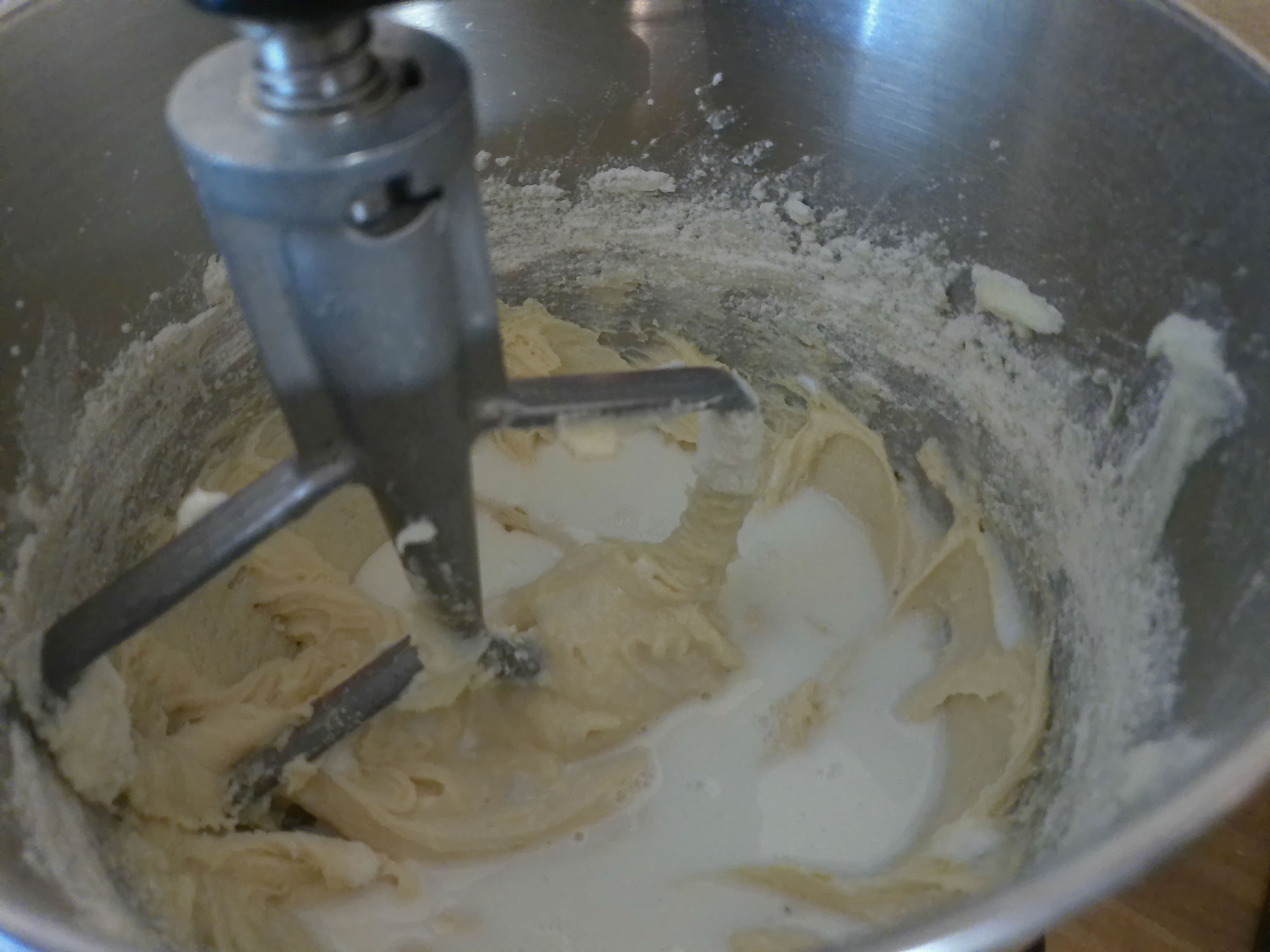 Beat the flour mixture into the egg mixture; alternating with milk. (Half the flour, beat, then milk, beat, ending with remaining flour, beat until smooth).