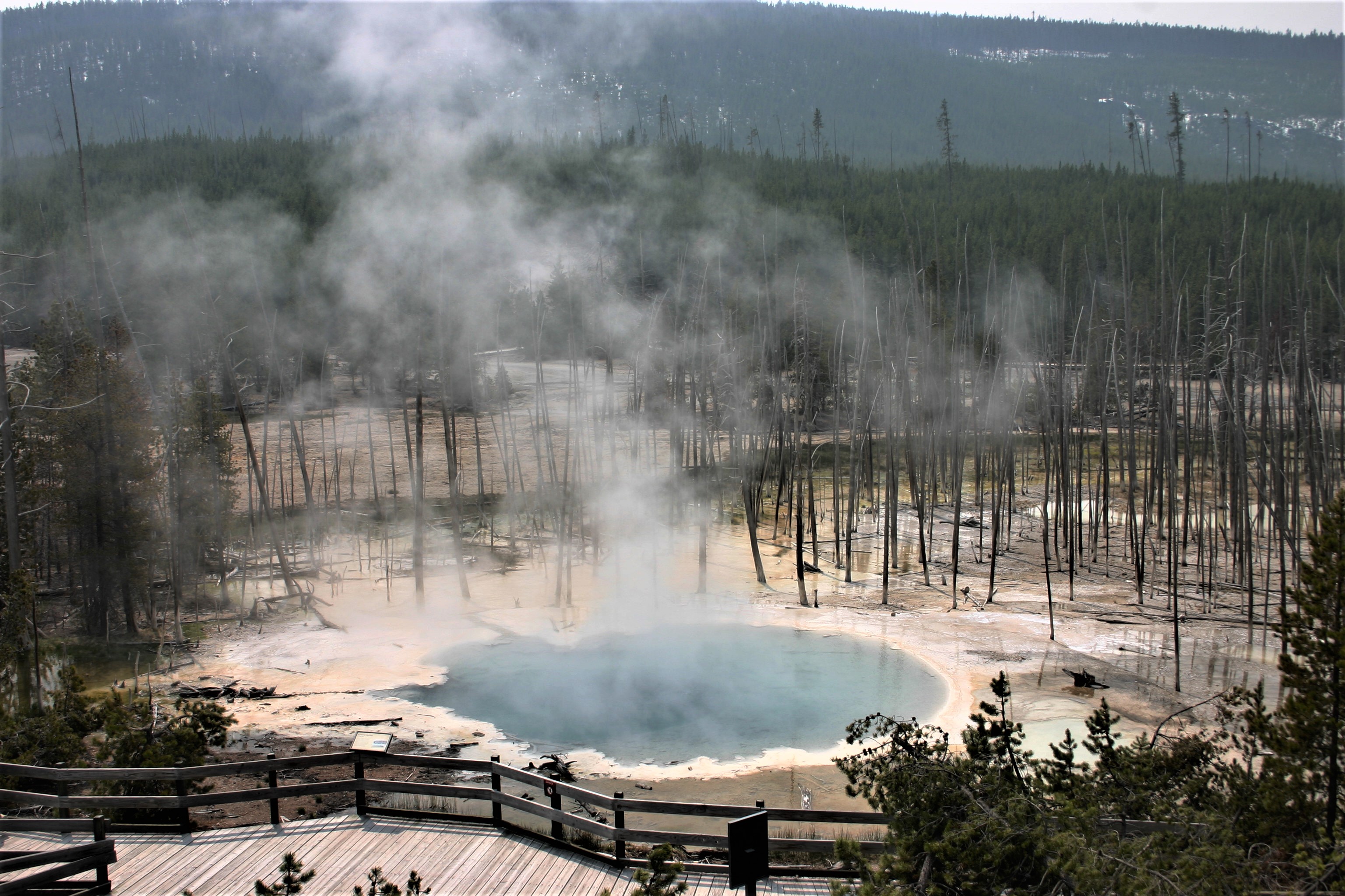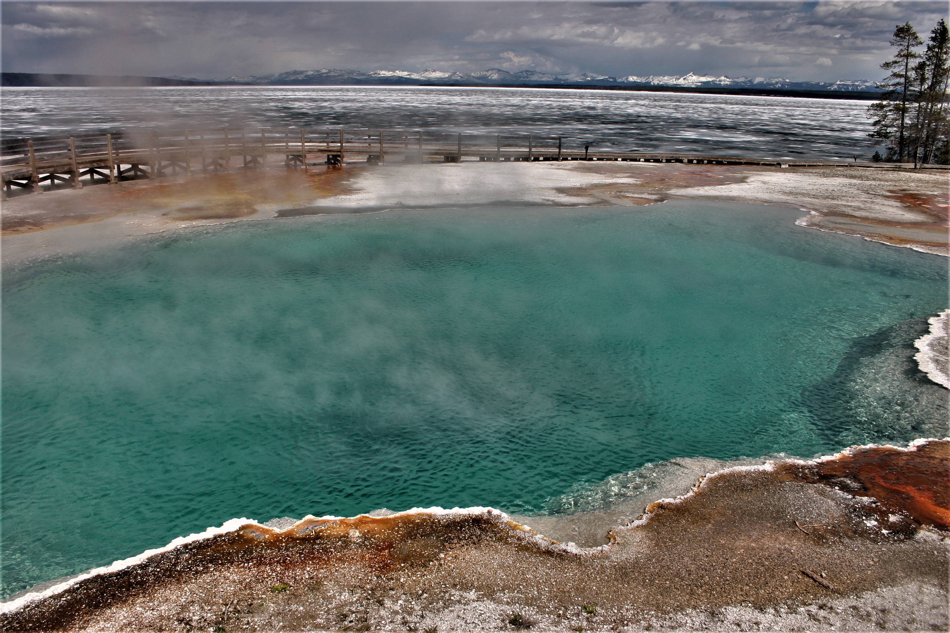 There are drawbacks to a spring visit. Not all the roads are open. This can create longer driving trips to get from point A to point B, if you can get there at all. Some places are snowbound with no access. It’s harder to find services that are open, so eating in the park requires standing in line and hunting for open tables. You’ll also need to dress in lots and lots of layers. The winds are cold, while the thermal features are hot and humid.