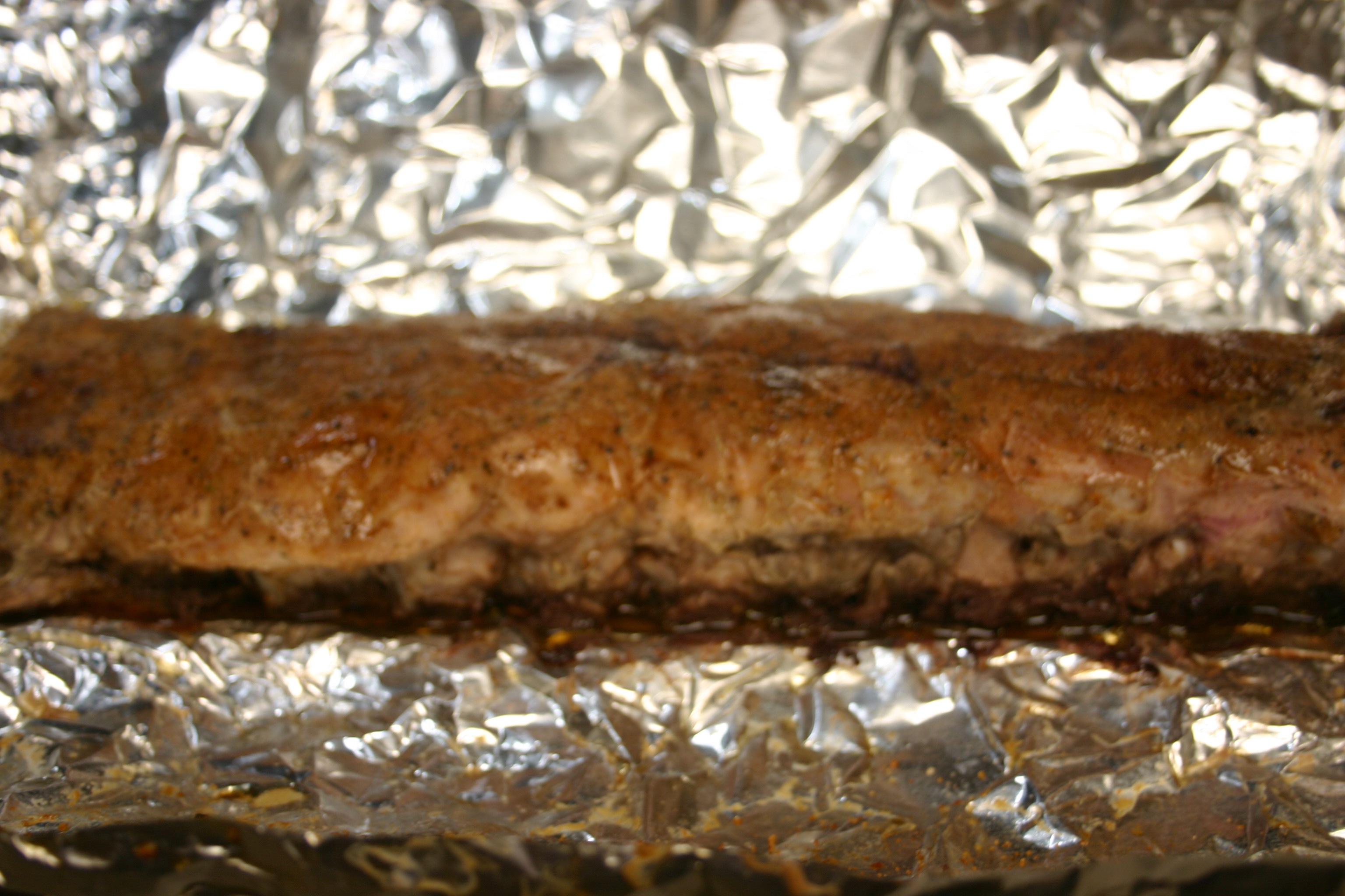 Heat oven to 300 degrees. Cut two sheets of heavy-duty foil (enough to wrap each rack well), and set aside along with a baking sheet to hold the ribs.