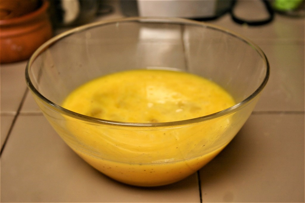 Lightly beat eggs in a bowl. Season with a pinch of fresh black pepper, set aside.
