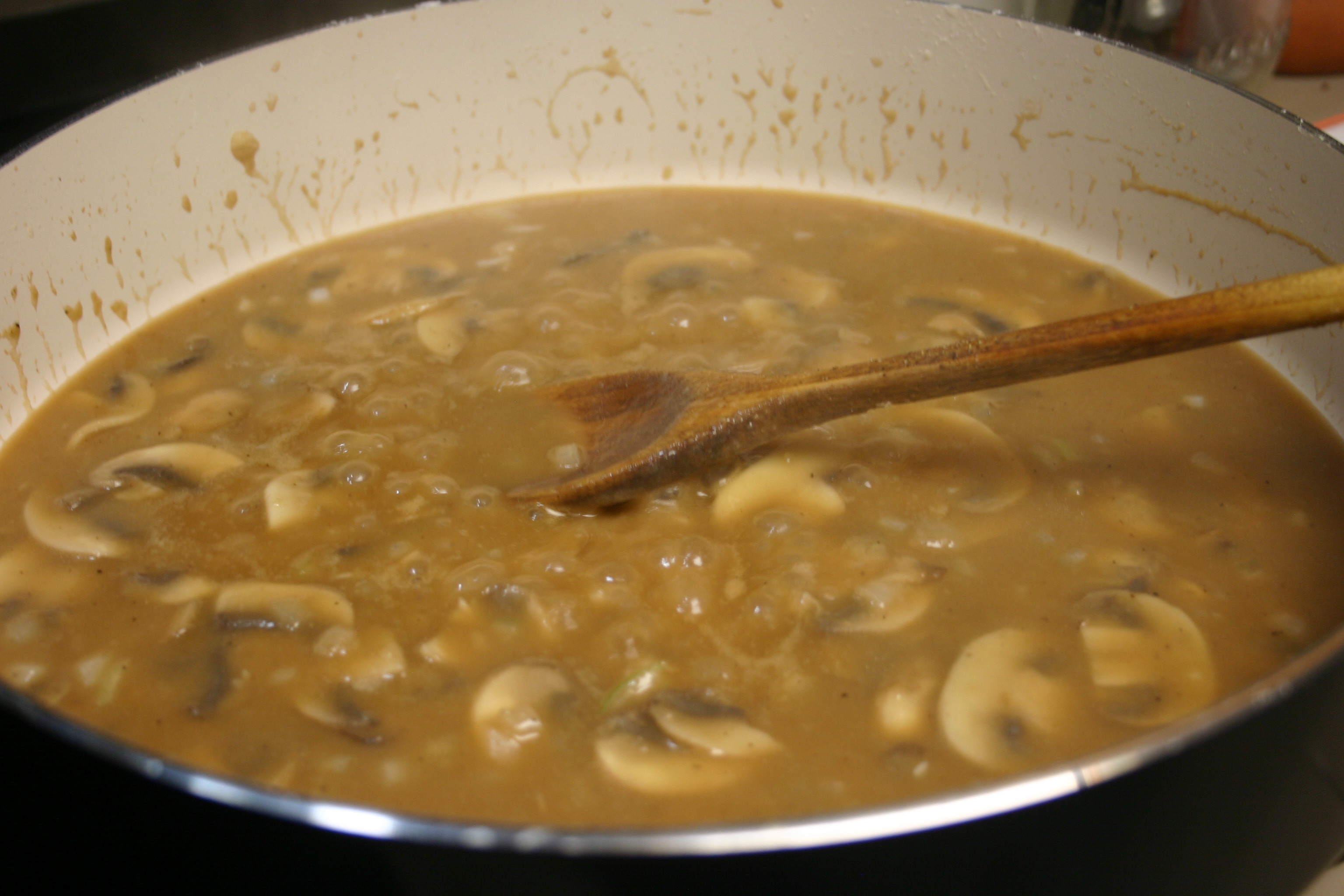 Beef Stroganoff (as in the real deal, which this is not) originated in Russia in the mid-19th-century. Since then, stroganoff has spread throughout the world. Even Hamburger Helper has their version of Stroganoff. As far as we know, the first printed recipe appeared in a classic Russian Cookbook, A Gift to Young Housewives, for Beef a la Stroganov, with mustard. This recipe appeared in their 1871 edition. It called for beef cubes (not strips), prepared in a dry marinade of salt and allspice, then sautéed in butter. The sauce was a simple roux mixed with mustard and broth, finished with only a small amount of sour cream. So the first Stroganoff had no mushrooms or noodles. After the fall of Tsarist Russia, stroganoff became popular in hotels and restaurants in China. In the 1950s Stroganoff made its way to Hong Kong, but was made with rice and omitting the sour cream. About this same time, thanks to Russian and Chinese immigrants as well as returning US Servicemen stationed in a pre-Communist China, Stroganoff made its way State-side. Somewhere along the line, the meat because sirloin strips, the rice was replaced with egg noodles and the signature ingredients of mushrooms and sour cream became an American must.