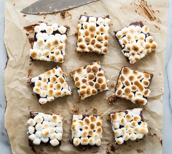 Heat broiler of the oven. Place S’Mores Bars under the broiler to lightly toast the marshmallows for about a minute.