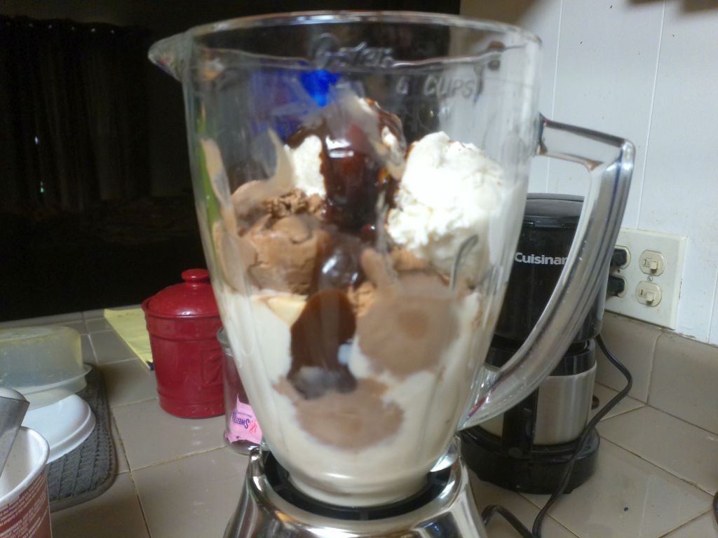 Place all the chocolate ice cream in a blender. Add chocolate rum, vanilla ice cream and milk. Blend for about 2 minutes. Add chocolate syrup and Bacardi. Blend until smooth, scraping down sides if necessary. Place blender in the freezer for 10 minutes to help thicken the shakes.