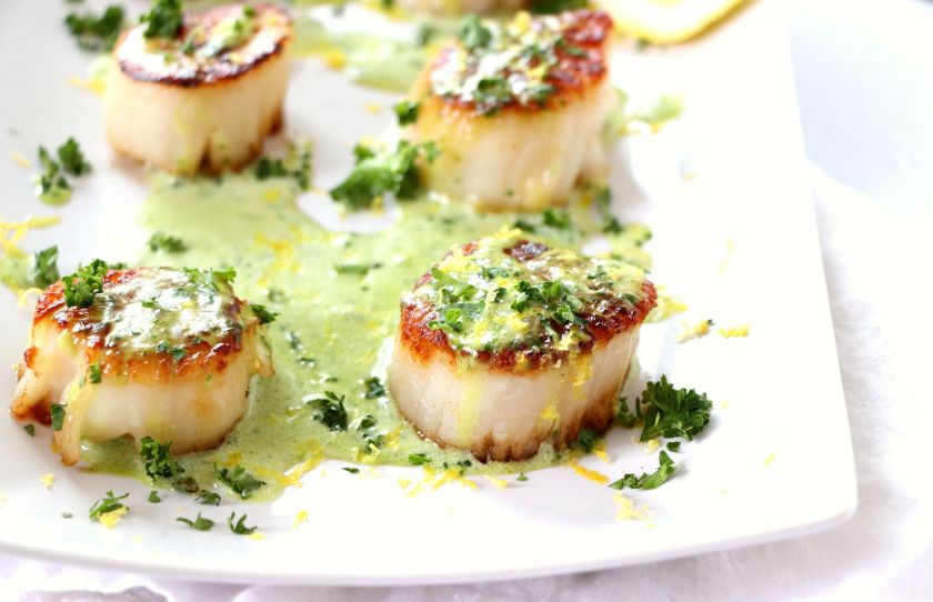 Seared Sea Scallops with Creamy Basil Sauce